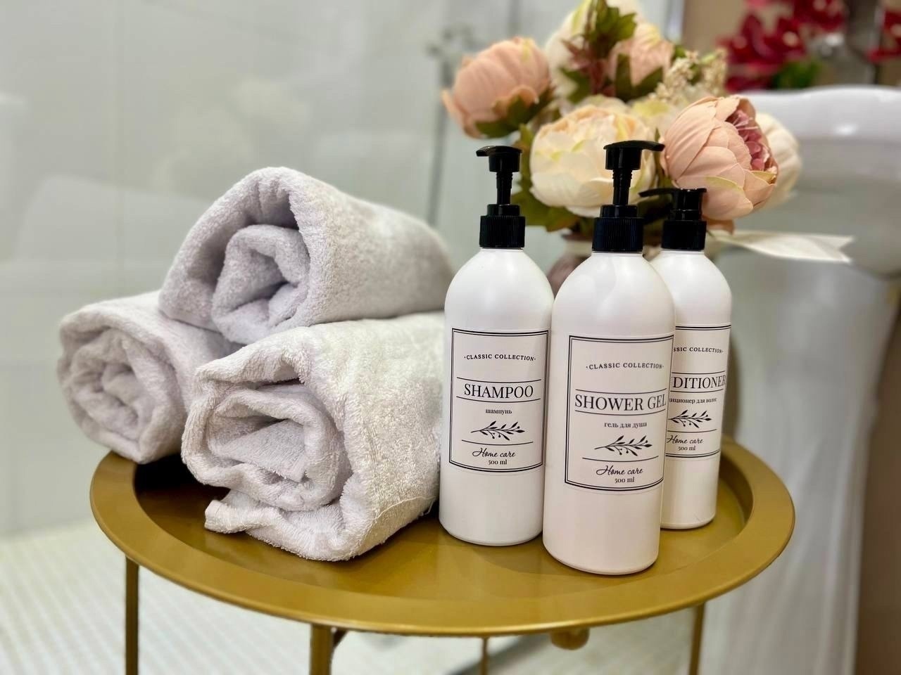 В подарок: разовые средства гигиены (шампунь, гель для душа, жидкое мыло, зубной набор).
