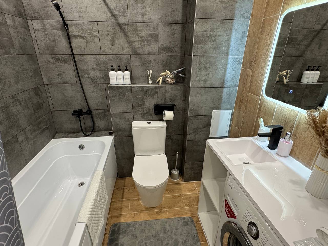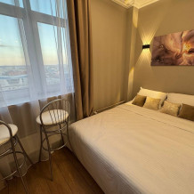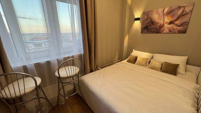 Студия: 1 комната, Кровать + диван. Для Вас готово свежее постельное бельё (100%-й хлопок) и полотенца. В квартире есть ванна. На этаже - балкон.