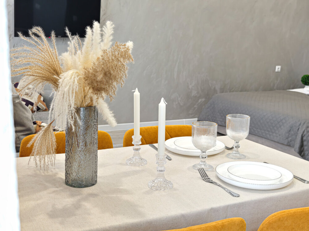 Квартира: 1 комната, двуспальная кровать + 1 раскладной диван. Будет комфортно разместиться 2-4 гостям. Для вас готово свежее постельное бельё (100%-й хлопок) и полотенца. В квартире есть ванна и балкон.