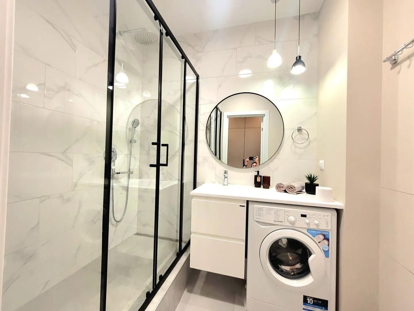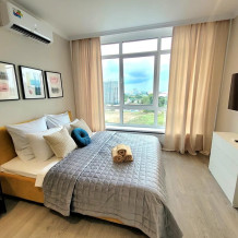 Студия: 1 комната, 1 двуспальная кровать. Для Вас готово свежее постельное бельё (100%-й хлопок) и полотенца. В квартире есть душевая кабина. На этаже - балкон.