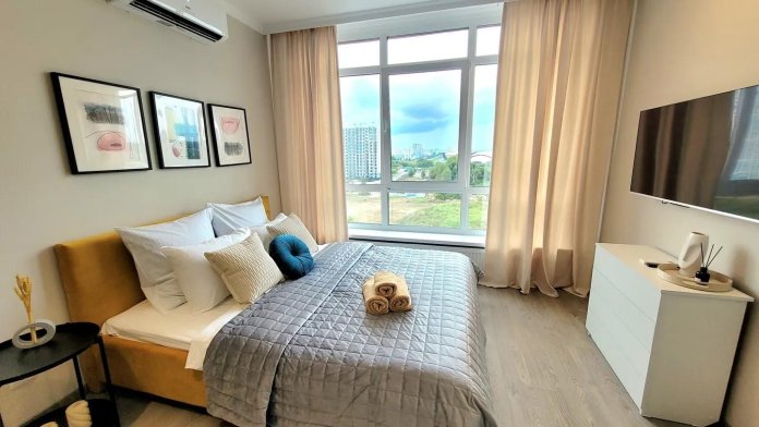 Интернет: высокоскоростной Wi-Fi от GооdLinе. Есть телевизор с кабельным ТВ и функцией «Смарт-ТВ».