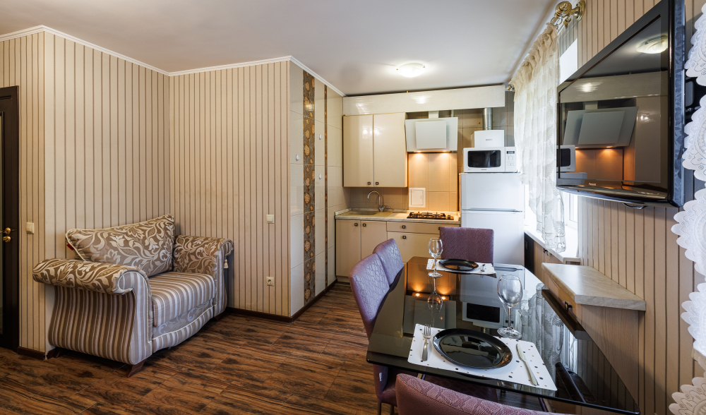 В апартаментах есть всё самое необходимое: телевизор, Wi-Fi, фен, утюг, стиральная машина, чайник, микроволновая печь, плита, холодильник, столовые приборы и базовая посуда, чай и кофе. Мы предоставляем нашим гостям полотенца, гель для душа, свежее постельное белье и тапочки.