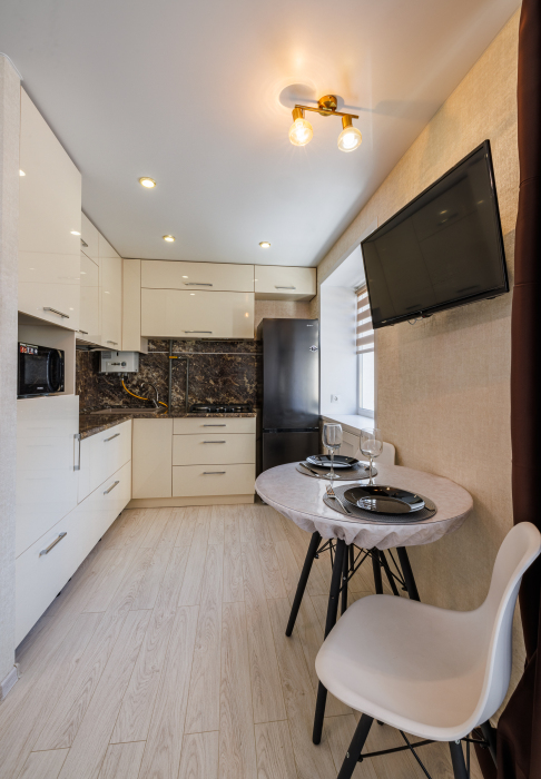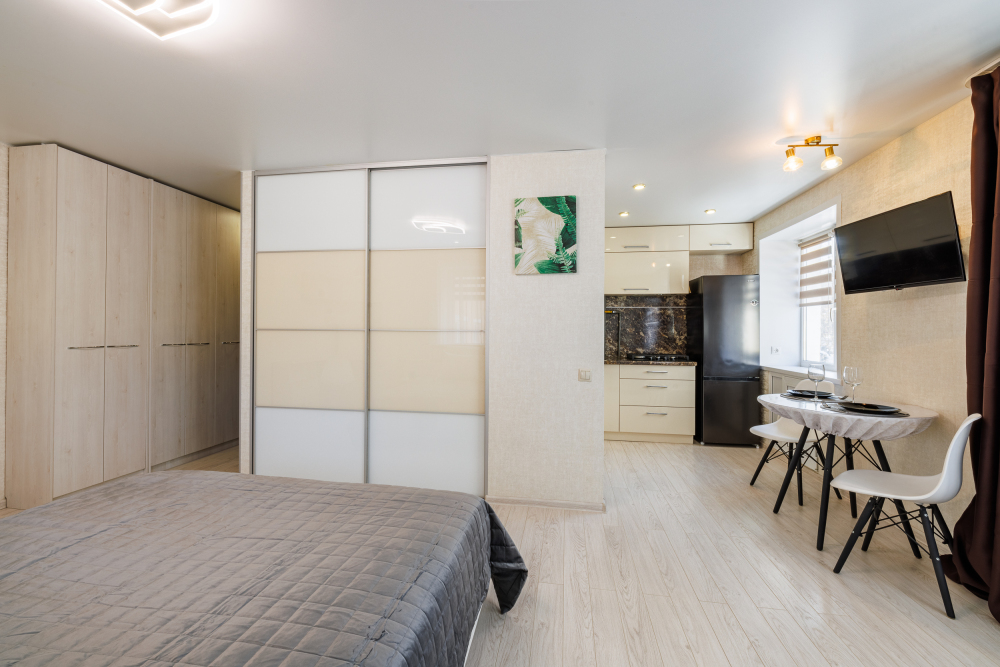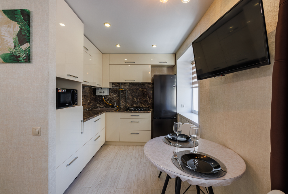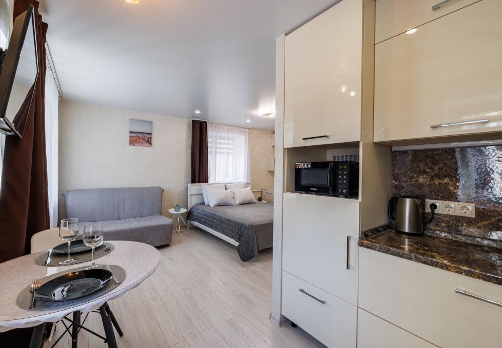 В апартаментах есть всё самое необходимое: телевизор, Wi-Fi, фен, утюг, стиральная машина, чайник, микроволновая печь, плита, холодильник, столовые приборы и базовая посуда, чай и кофе. Мы предоставляем нашим гостям полотенца, гель для душа, свежее постельное белье и тапочки.