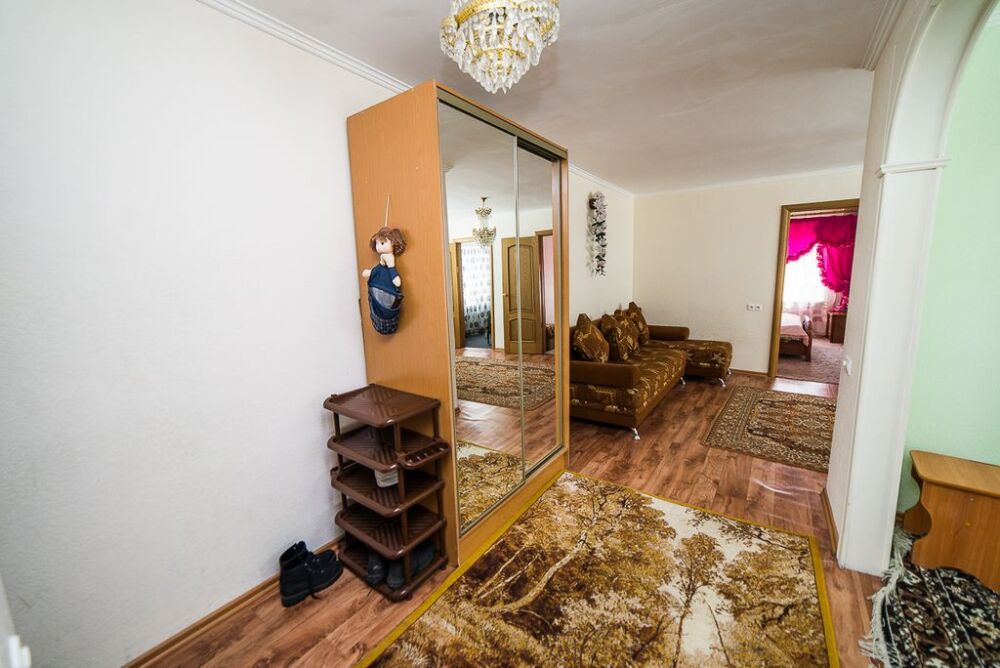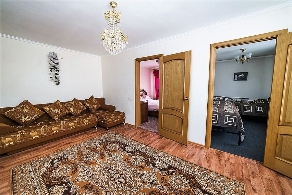 В квартире: телевизор, стиральная машина, фен, микроволновка, шахматный компьютер, вся посуда (как дома у Вас, даже в избытке), рюмки, фужеры, бокалы на 7-8 человек, чтобы посидеть хорошей компанией и пообщаться после горы.