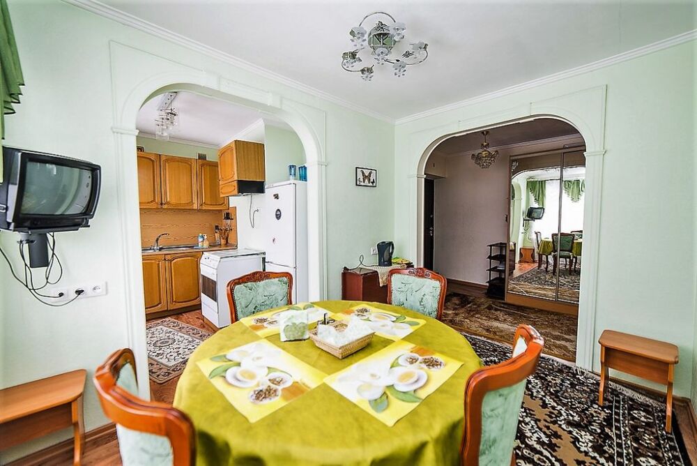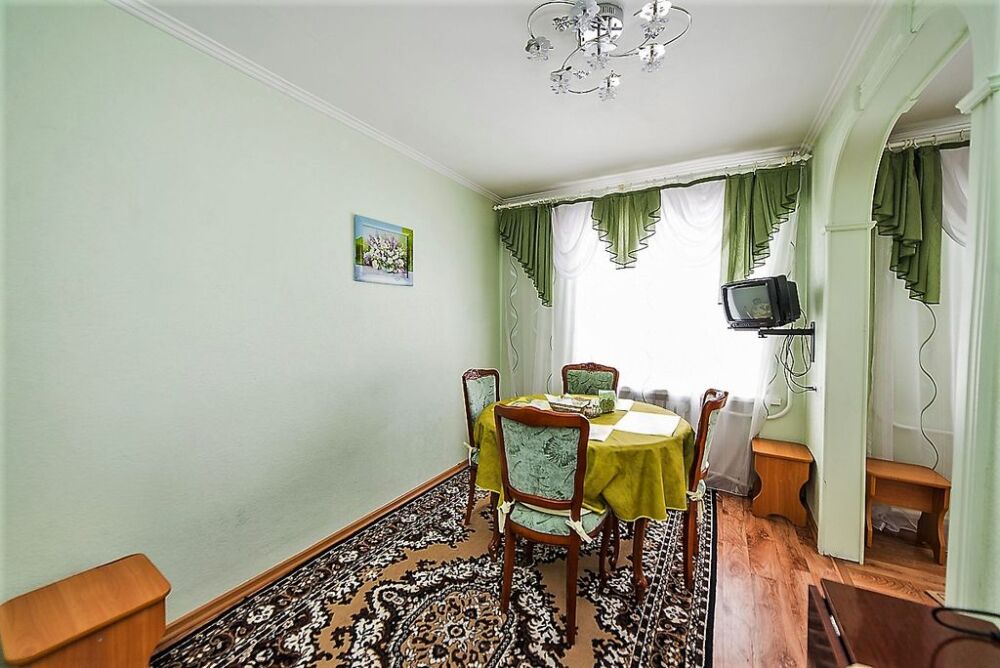 В апартаментах 7 спальных мест. Импортная мебель, tv, видео, музыкальный центр. Кухня + столовая. Евроремонт, пластиковые окна - всё красиво и чисто.