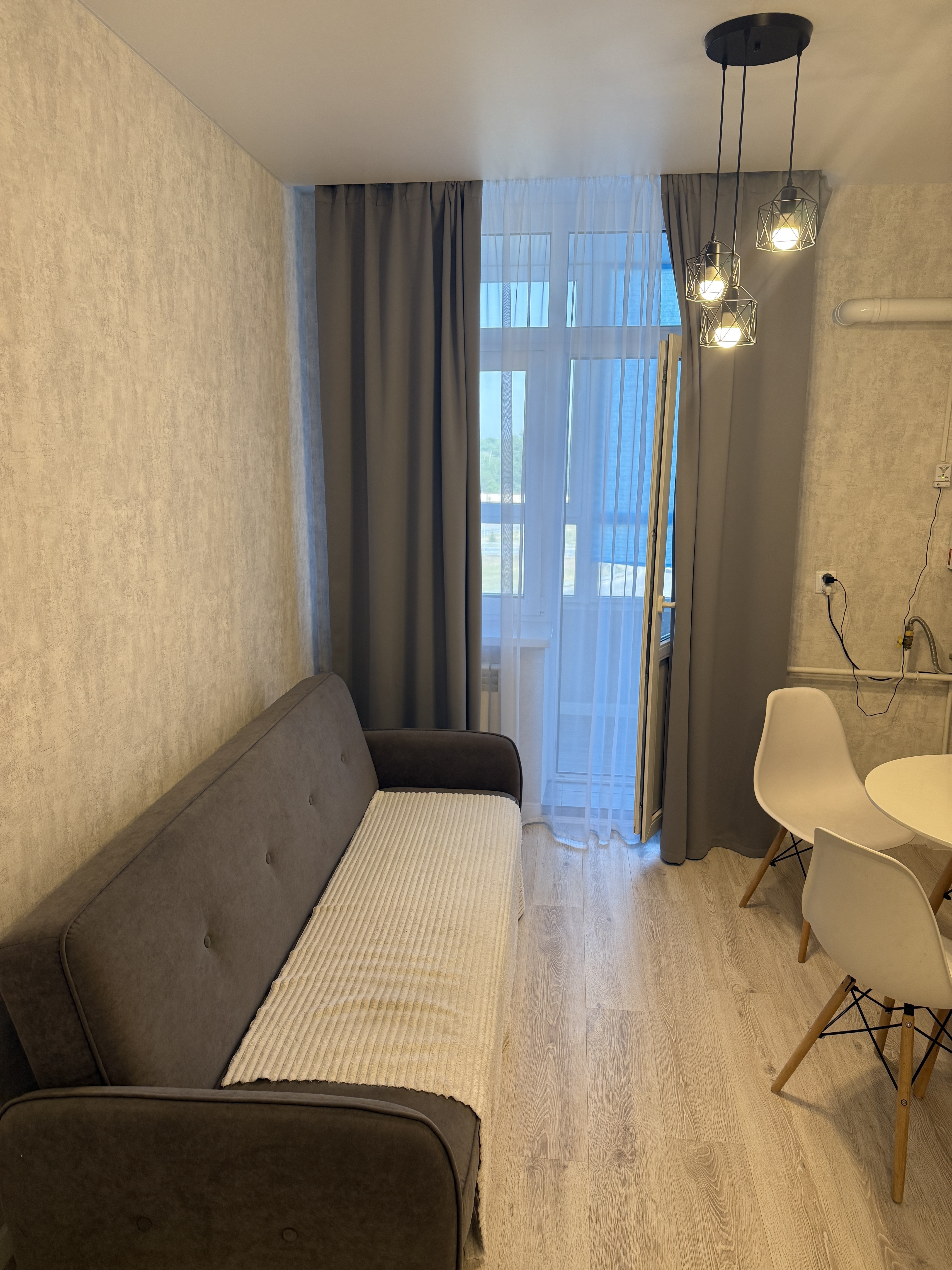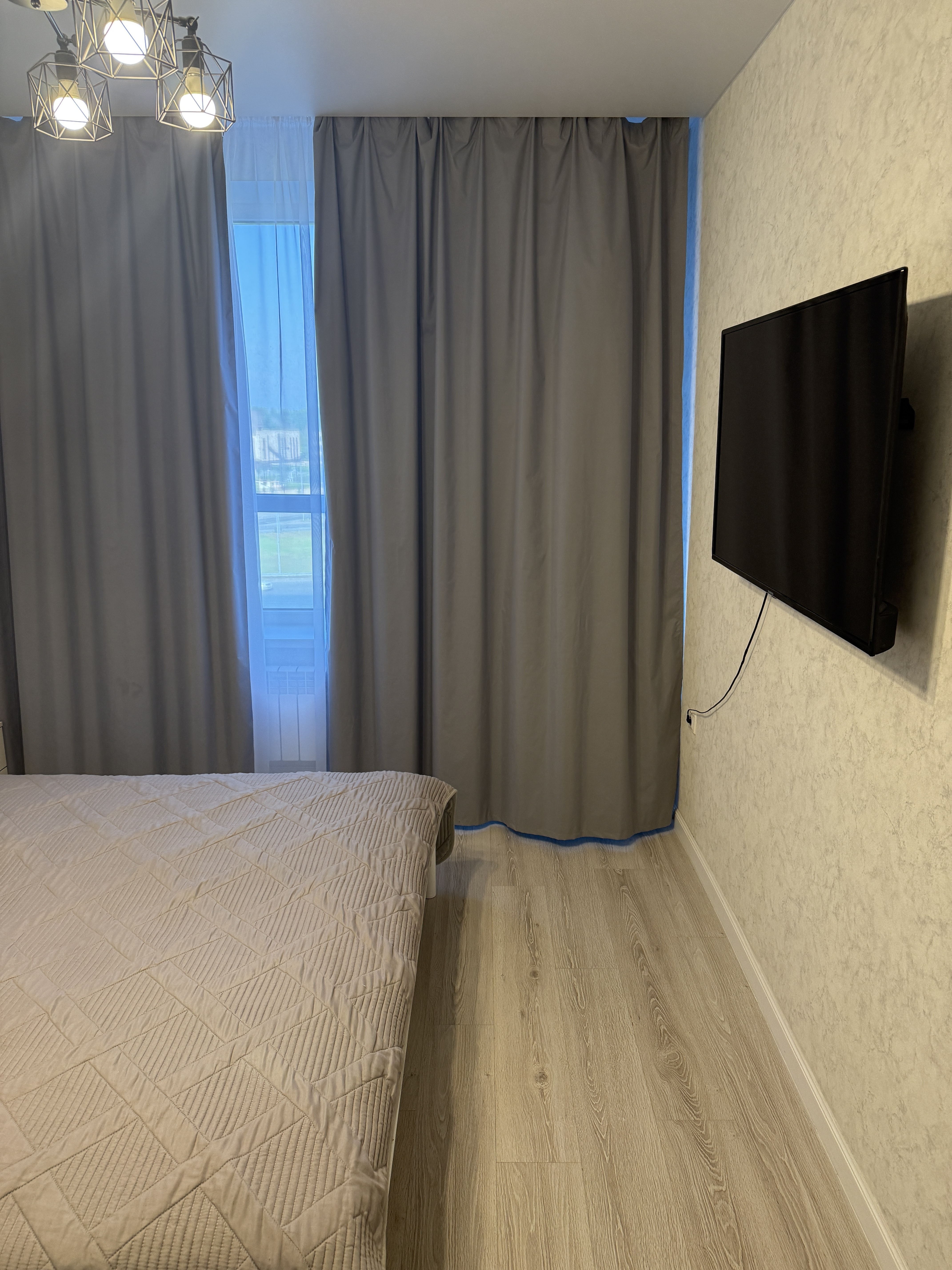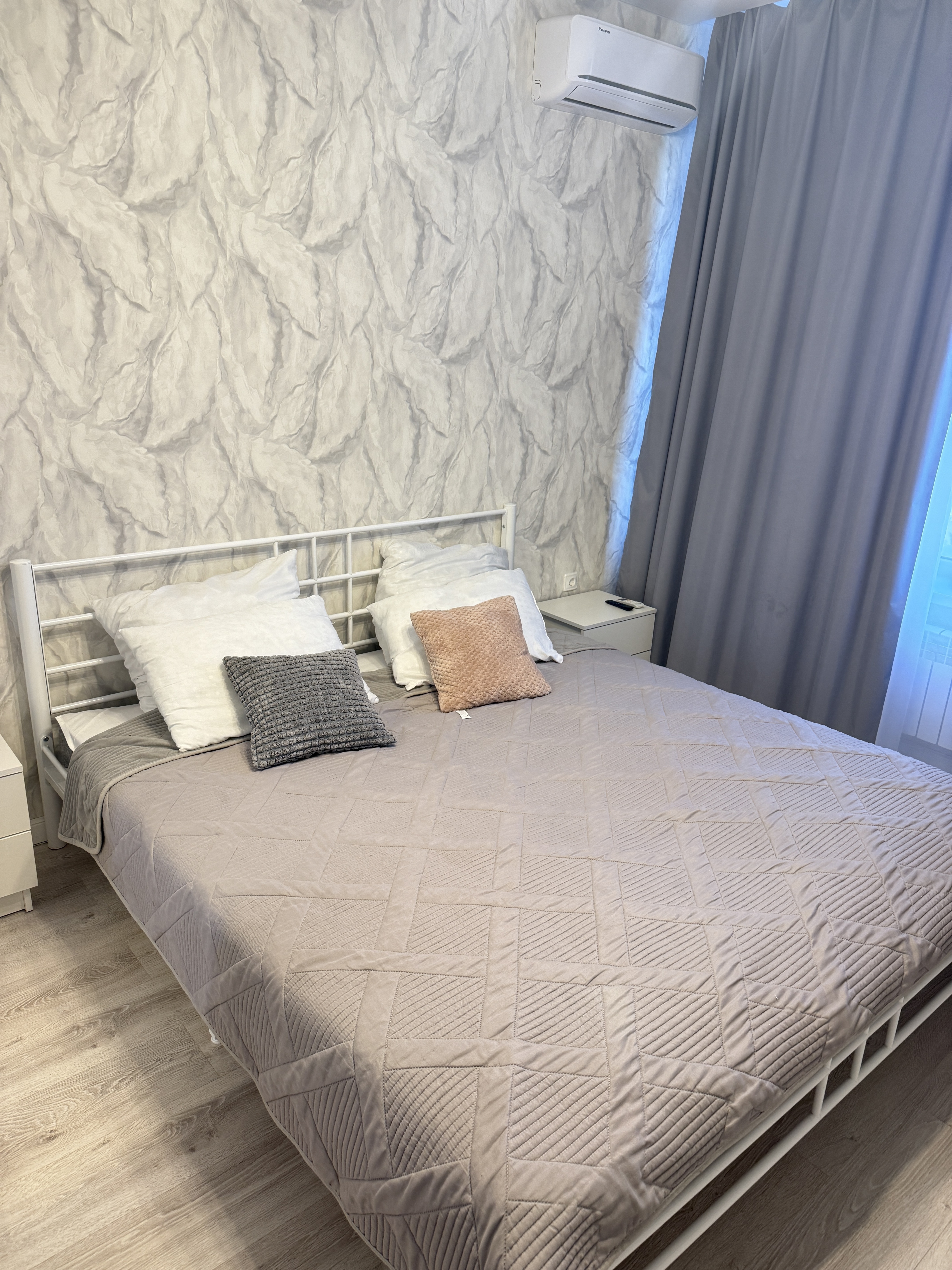 Квартира расположена на 5 этаже, 19-этажного монолитного дома. В квартире есть вся бытовая техника, сантехника в ванной комнате, необходимая мебель для комфортного проживания. В жилых комнатах есть двуспальная кровать и диван. Ванная комната совмещенная.