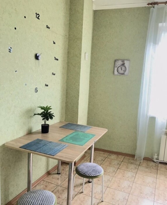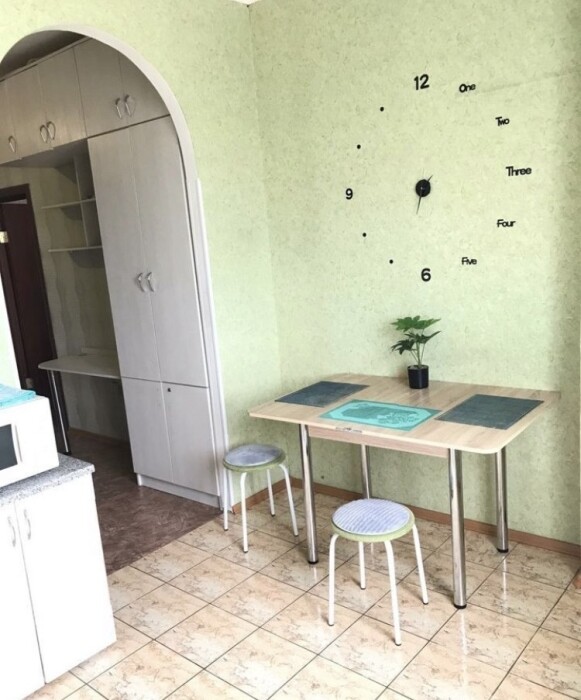 Просторная кухня. Всё необходимое для проживания есть, горячая и холодная вода всегда, газовая плита, вся необходимая посуда, стиральная машина, микроволновка, телевизор, интернет wi-fi. В квартире 4 спальных места.
