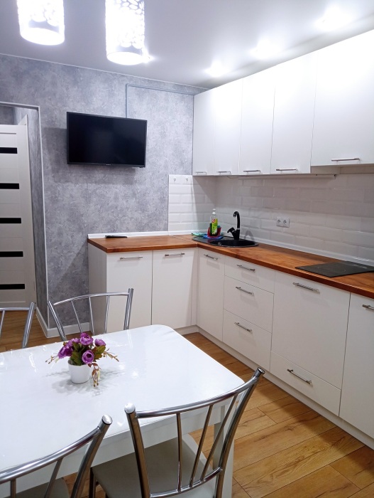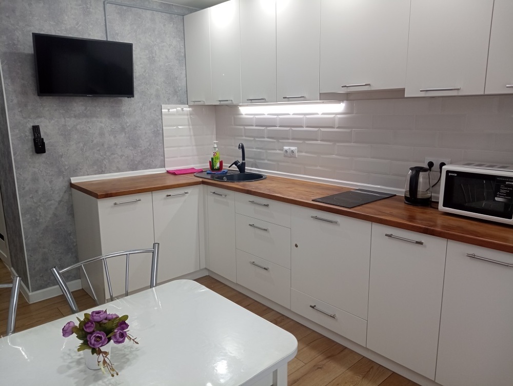 Двуспальная кровать, раскладной диван, кондиционер, 2 Smart TV телевизора, Wi-Fi, полностью оборудованная кухня: плита, чайник, холодильник, вся необходимая посуда и принадлежности. Стиральная машина, утюг, фен. Чистое постельное бельё. Для удобства гостей – чай, сахар, соль, средства гигиены, зубная паста и щетки.