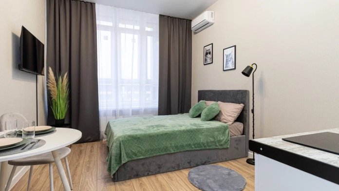 Уютная домашняя обстановка, полностью оборудованные кухня, ванная и спальня