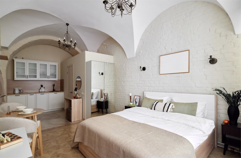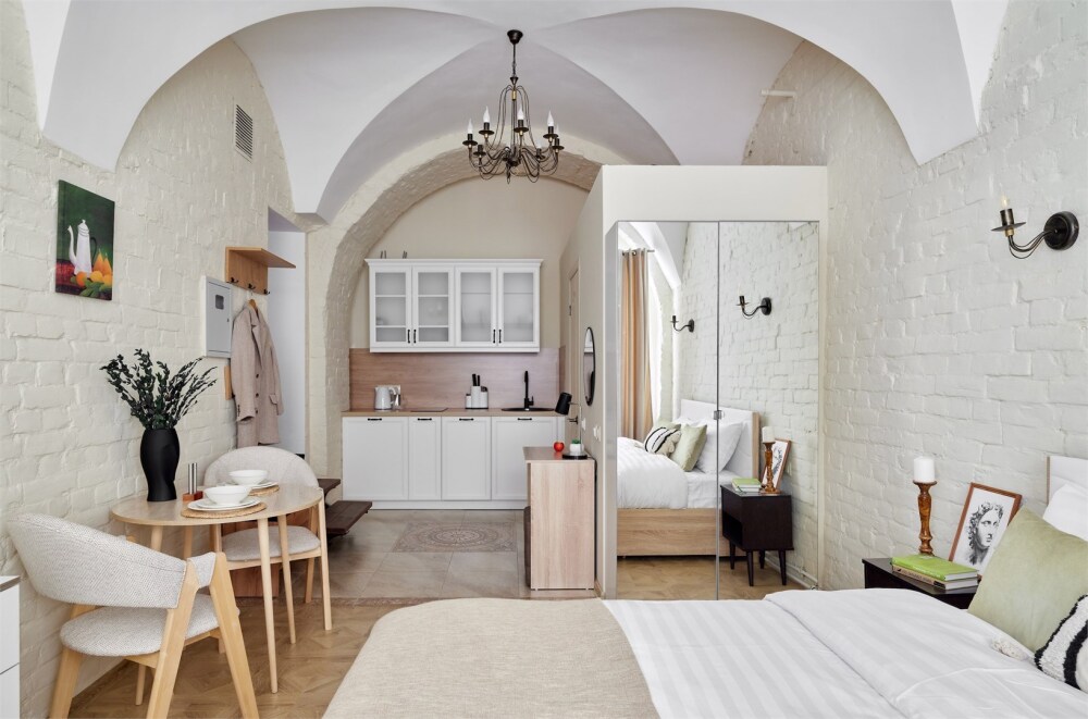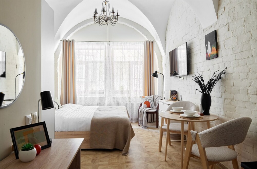 Просторная и стильная студия с дизайнерским интерьером в Центральном районе Петербурга у Московского вокзала