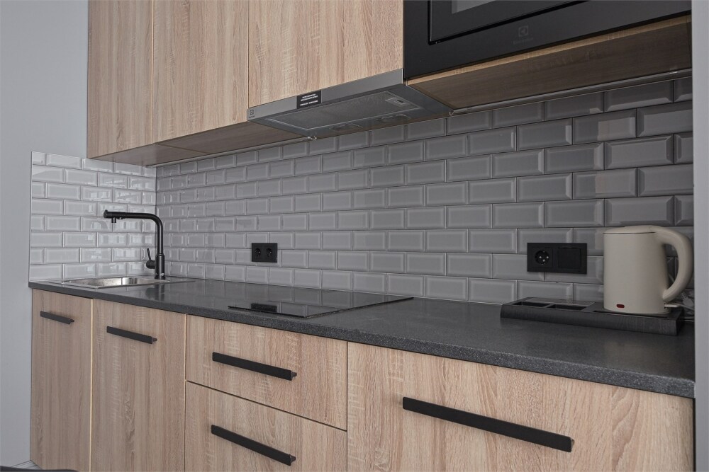 - Кухня: посудомоечная машина, электрическая плита, микроволновая печь.