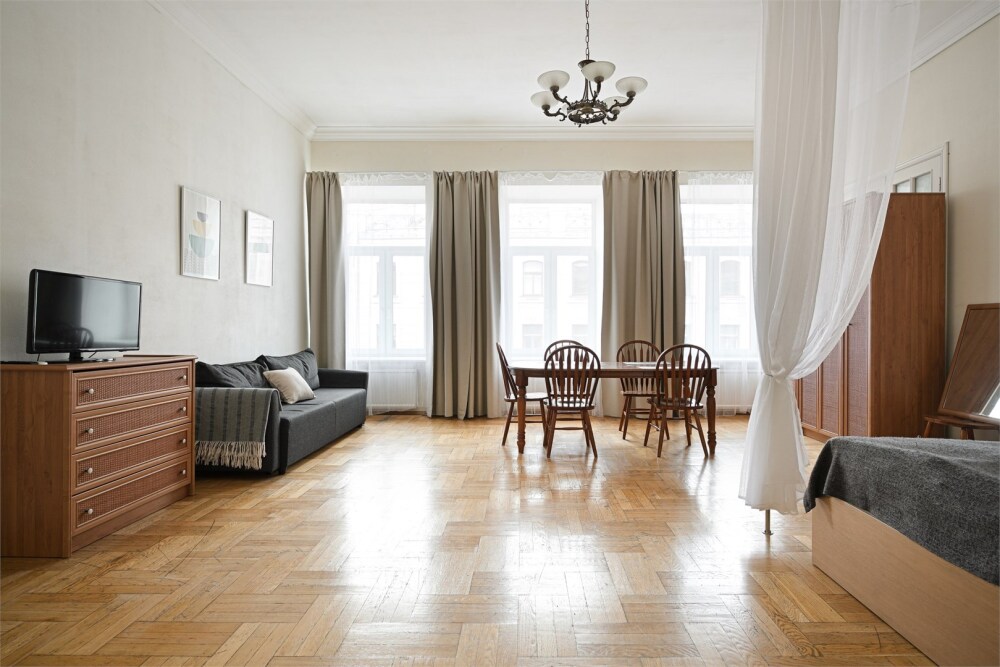 Студия в Центральном районе с видом для пятерых гостей в центре Петербурга у Аничкова моста.