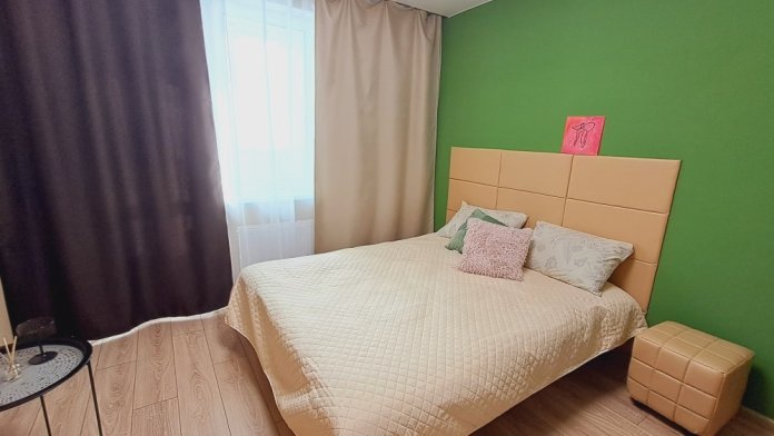 В квартире есть: двухспальная кровать с жёстким удобным матрасом;