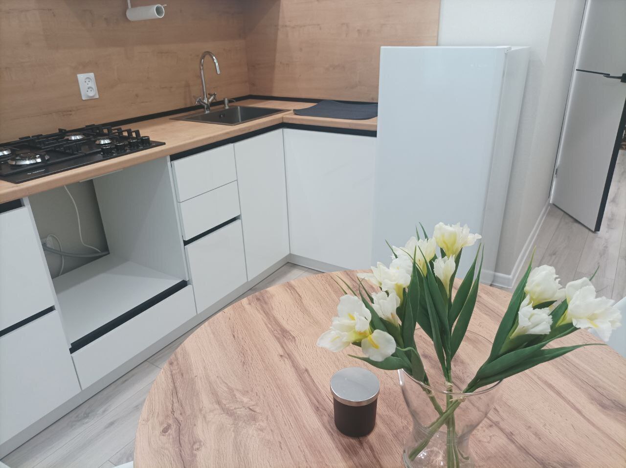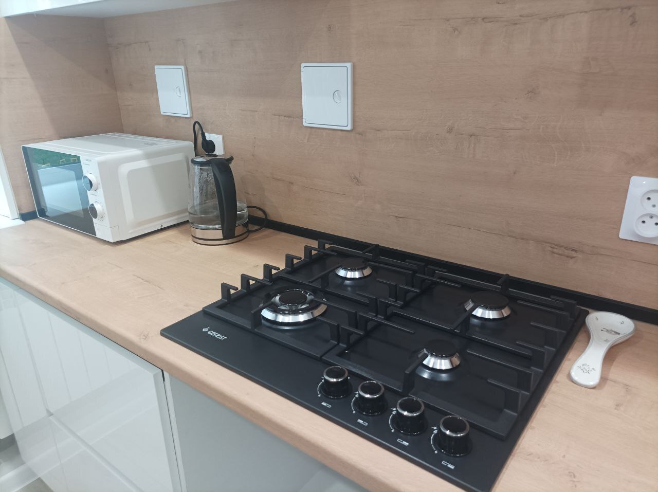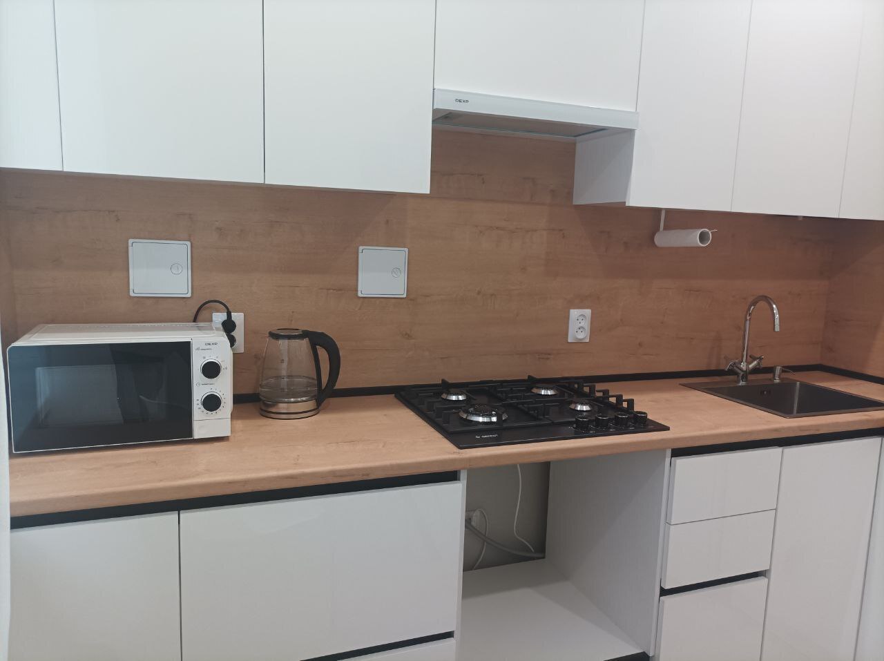 - вся необходимая для комфортного проживания новая бытовая техника (газовая панель, холодильник, микроволновка, электрический чайник, стиральная машина, фен, Smаrt ТV, утюг);