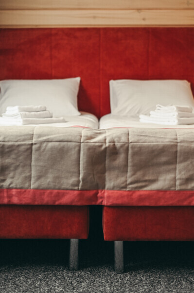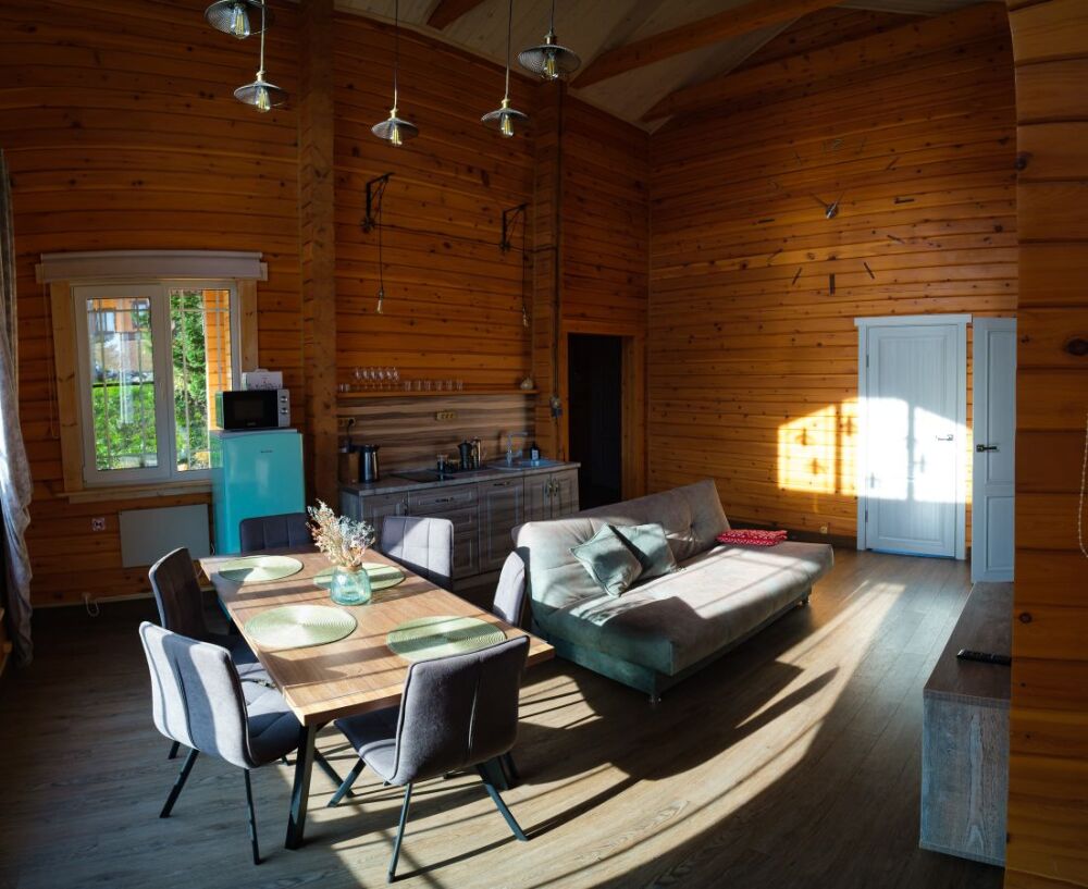 Каждое шале вмещает в себя 4 основных места (взрослые) и 2 дополнительных места на уютном диване в гостиной комнате.