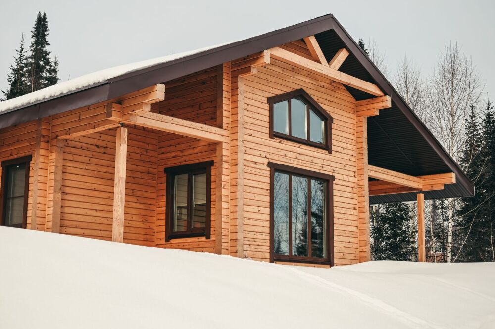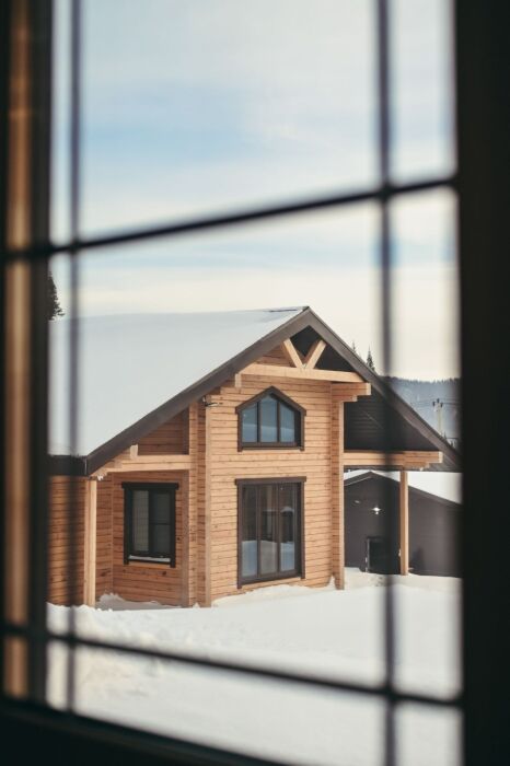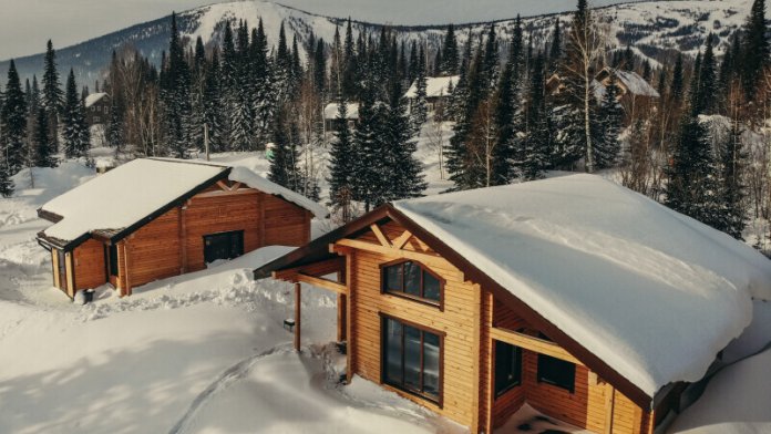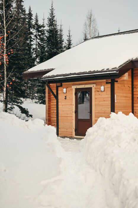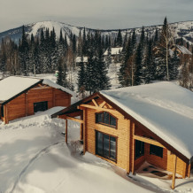 Три идентичных шале из кедра в живописном месте у подножья сектора Б.