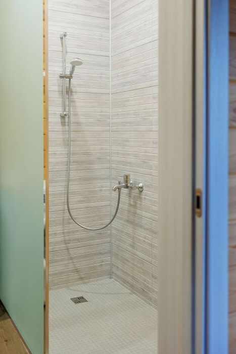Теплый пол, душ, раковина, фен, комплект полотенец для каждого гостя, туалетно-косметические принадлежности.