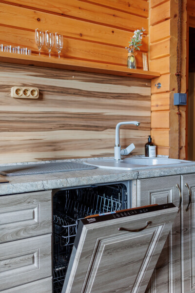 Уютная оборудованная кухонная зона. Так же в Вашем распоряжении посудомоечная и стиральная машина.