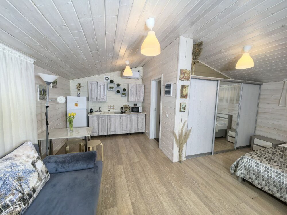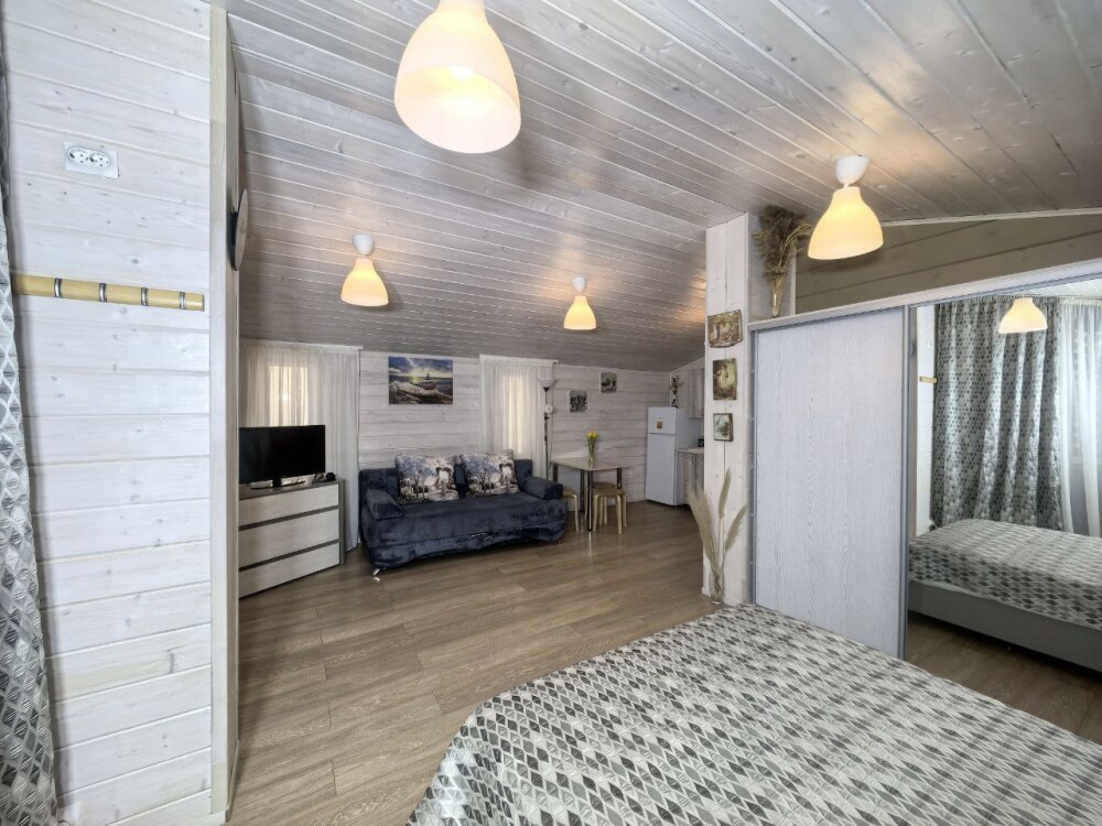 К услугам гостей номера классом стандарт, также на территории есть барнхаус - современный уютный домик, дом сруб на компанию до 12 человек.