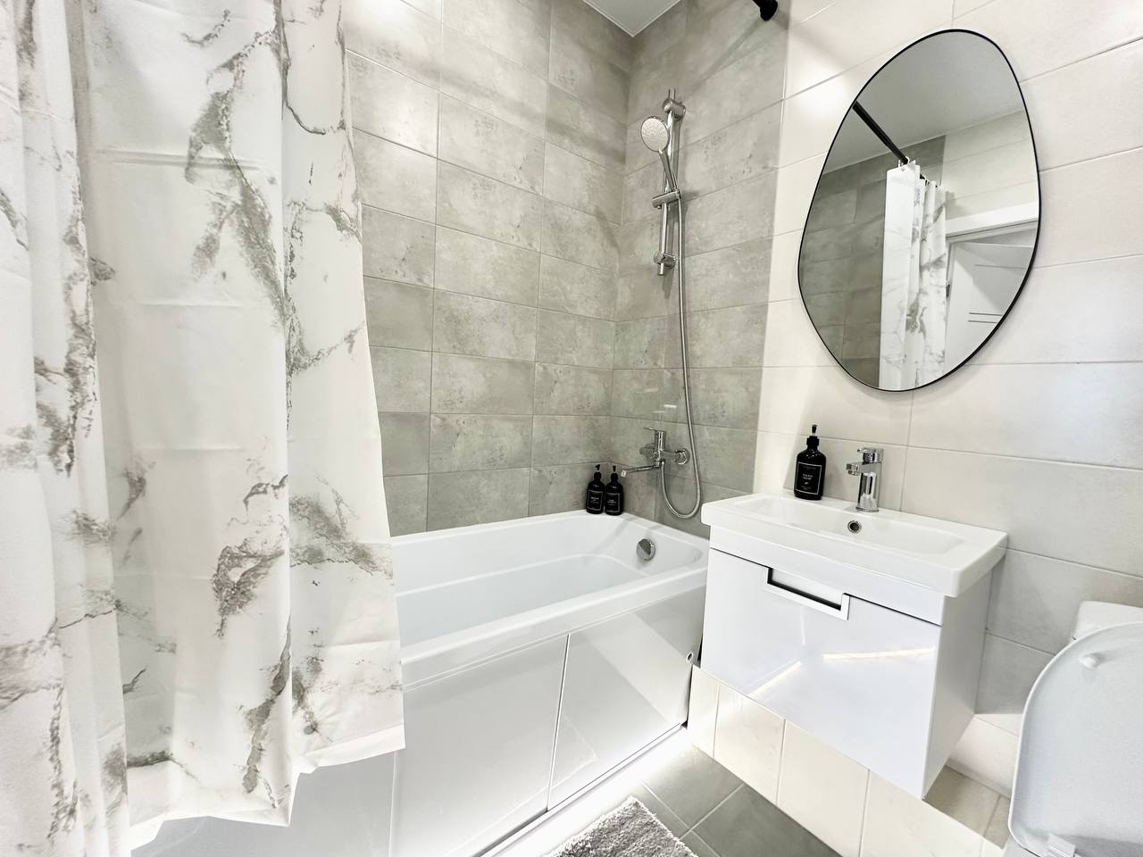 - Просторная ванная, фен, полотенца.