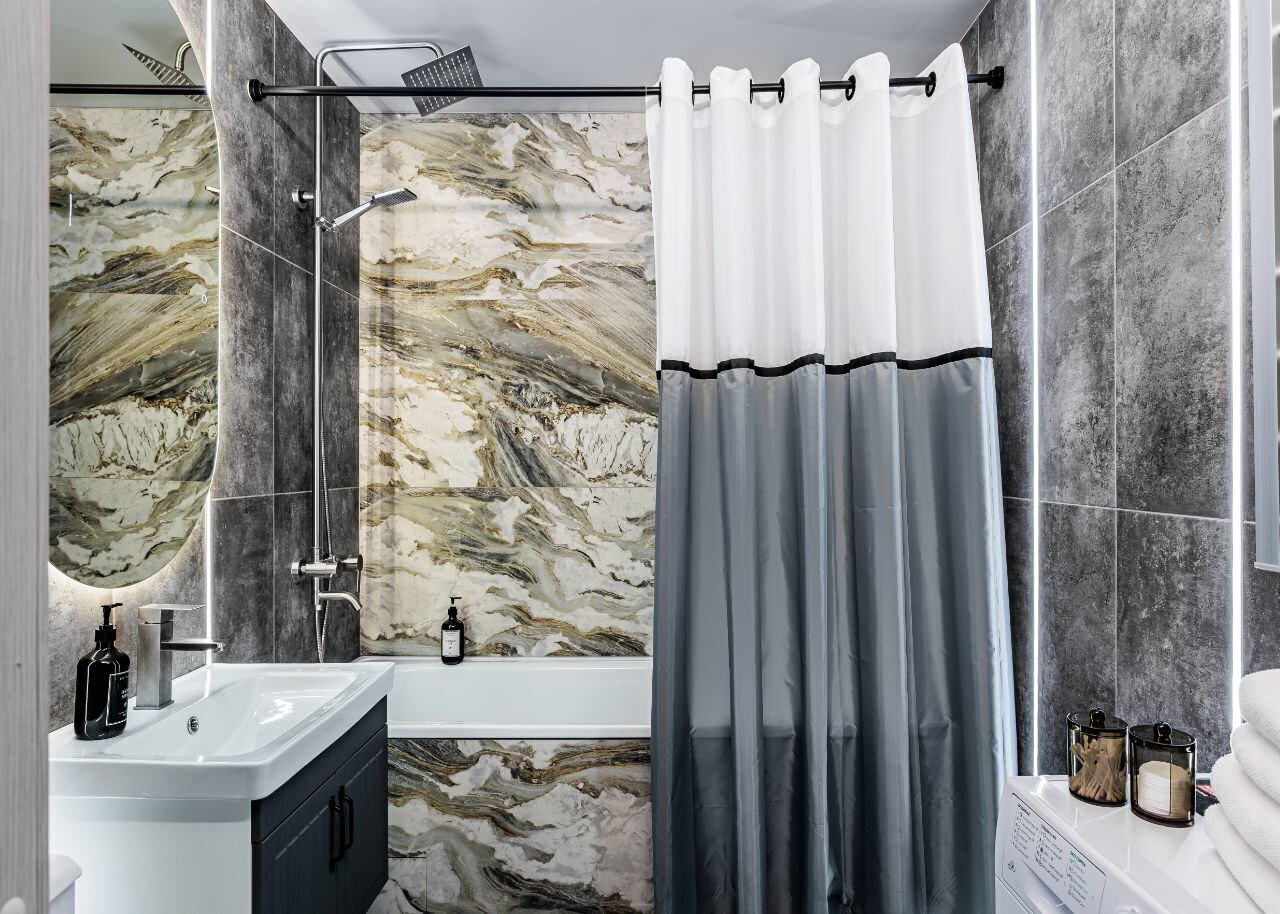 - Просторная ванная, фен, полотенца.