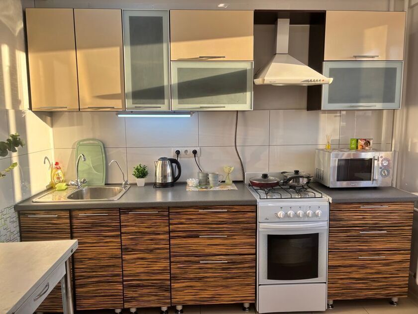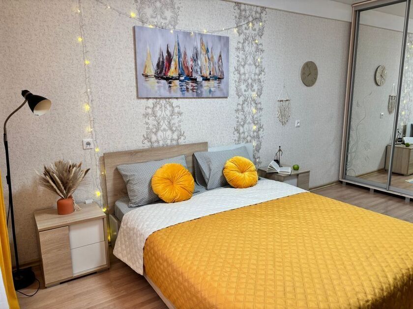 В квартире есть все необходимое для Вашего комфорта: Жк телевизор, большая двуспальная кровать в гостиной, двуспальный диван на кухне, полностью оборудованная кухня (холодильник, газовая плита с духовкой, микроволновая печь, электрический чайник, фильтр для питьевой воды), посуда, столовые приборы, кастрюли и сковороды, фен, ванные принадлежности, утюг с гладильной доской, стиральная машина, сушилка, бесплатный wi-fi.