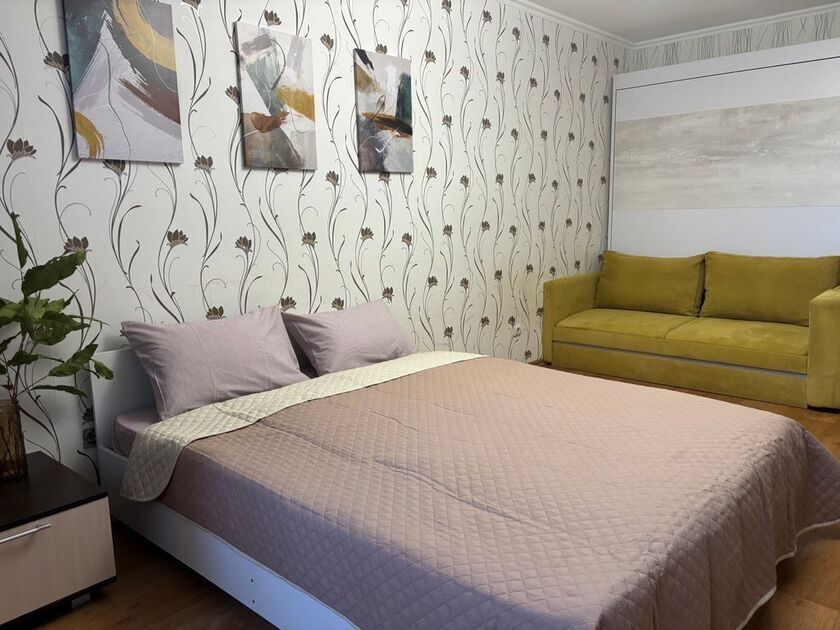 Есть большая кровать с ортопедическим матрасом, раскладной большой диван, который превращается в кровать 140/200.