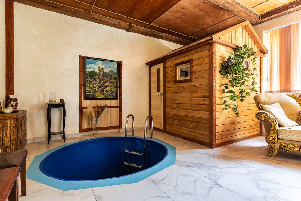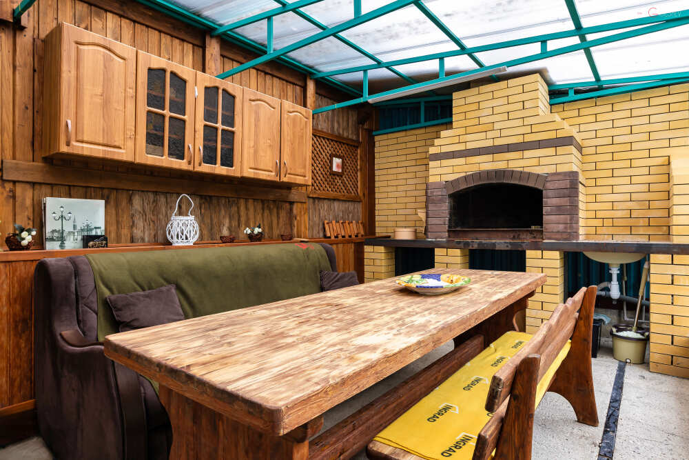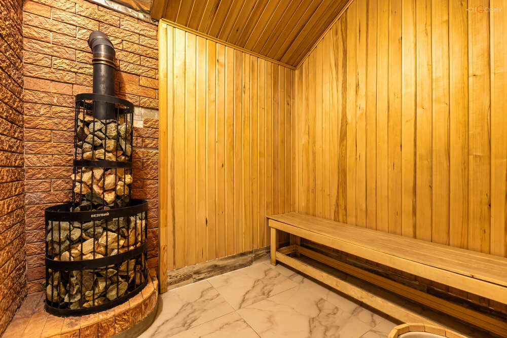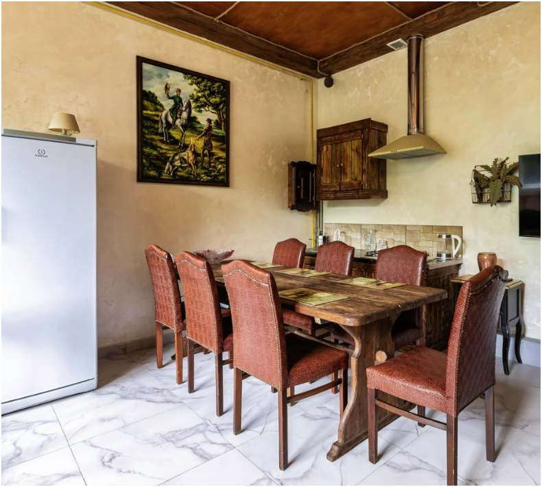Кухня оборудована всем необходимым: посудой, кухонными принадлежностями. Можно попариться в баньке.