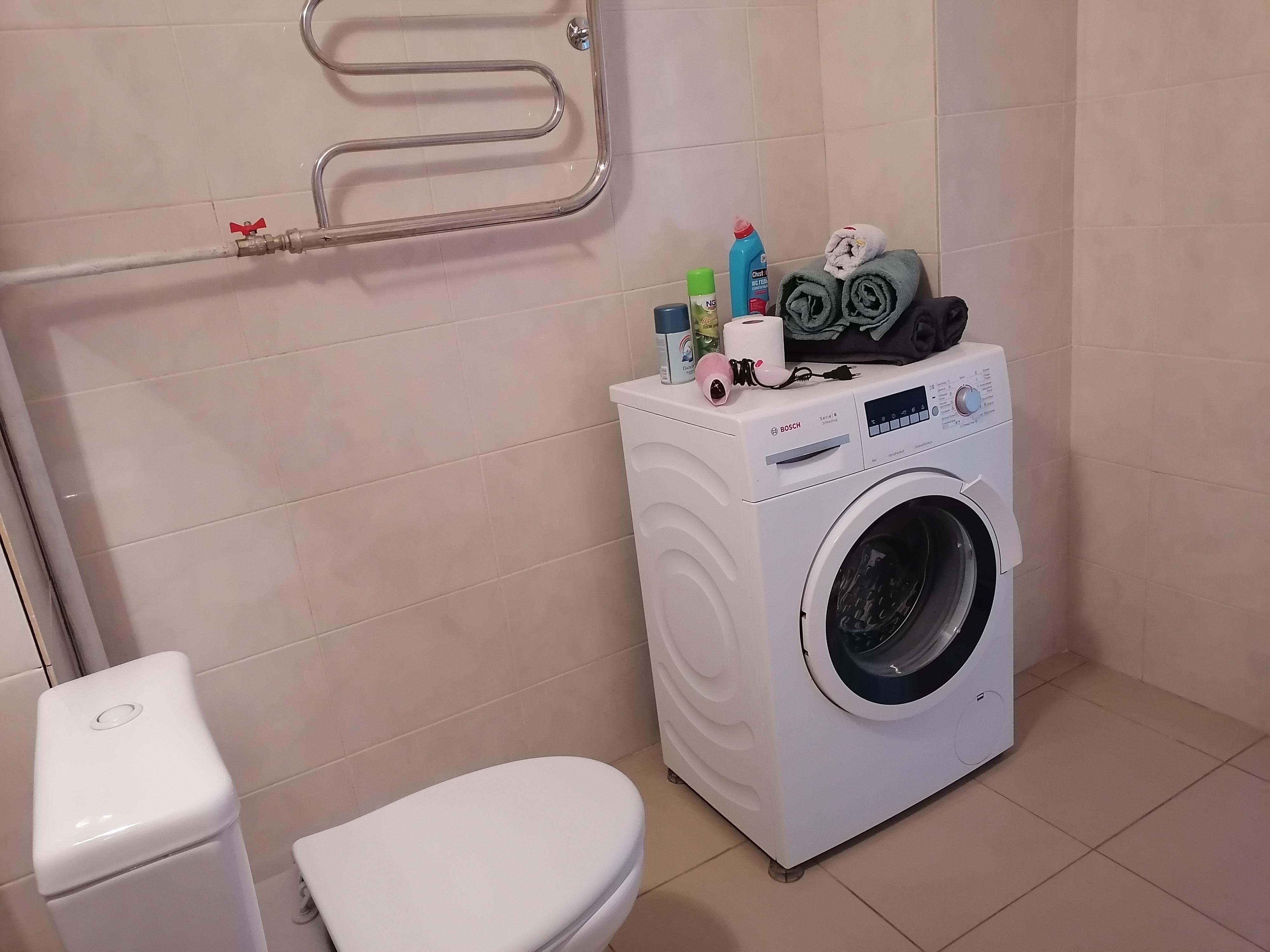 Вся необходимая бытовая техника:холодильник, св печь, Эл. плита, духовка, чайник, стиральная машина, духовка, утюг, фен.