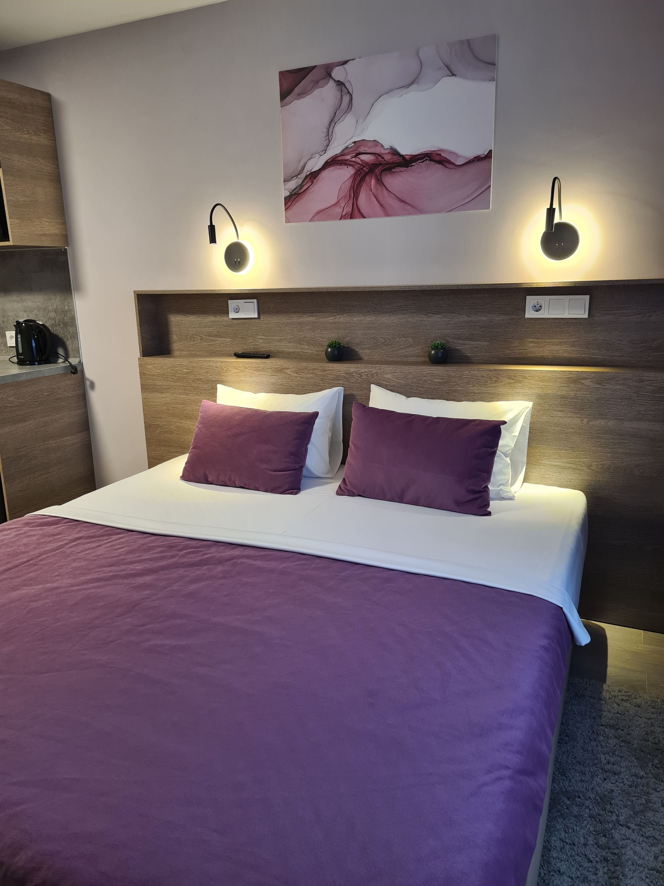 Охраняемая территория, парковка для гостей на территории апарт-отеля платная и на улице бесплатная.