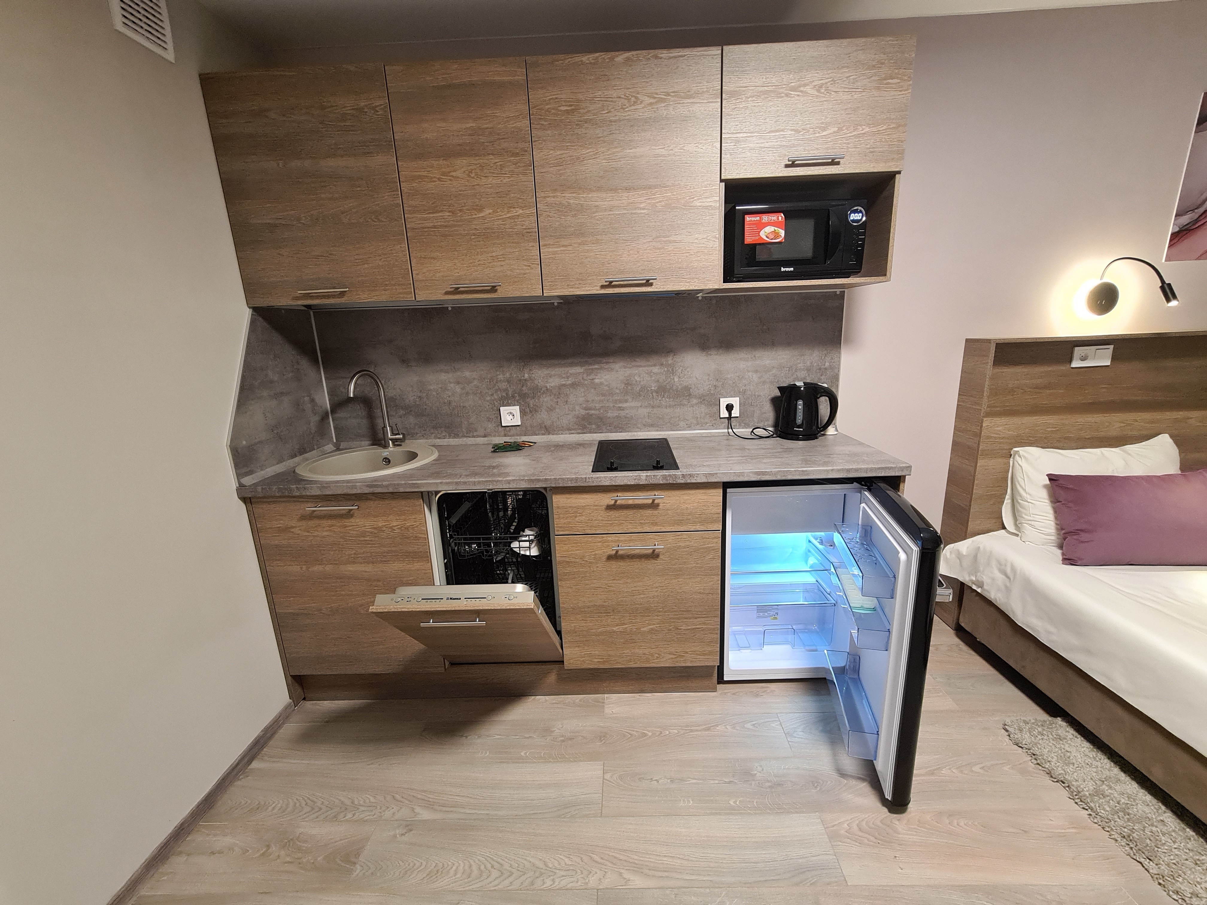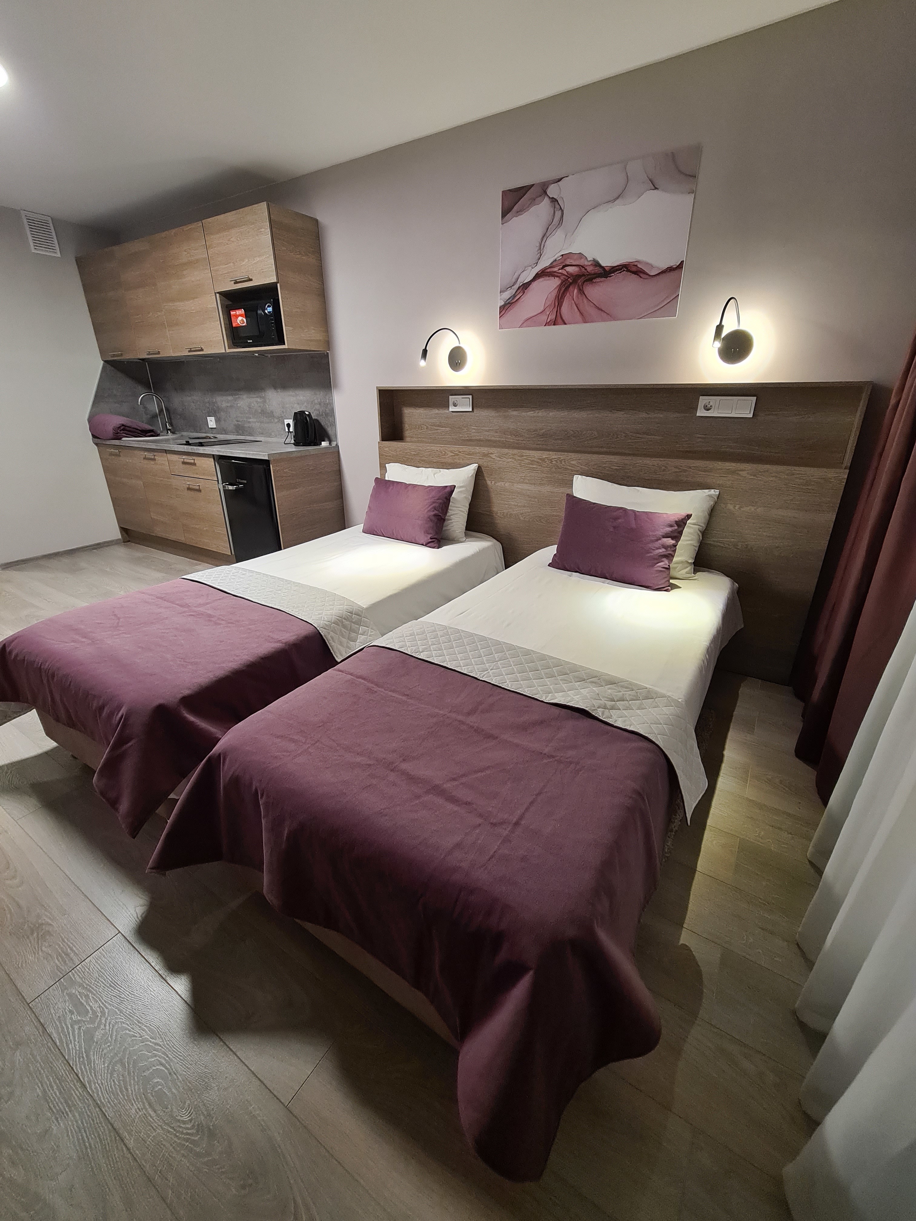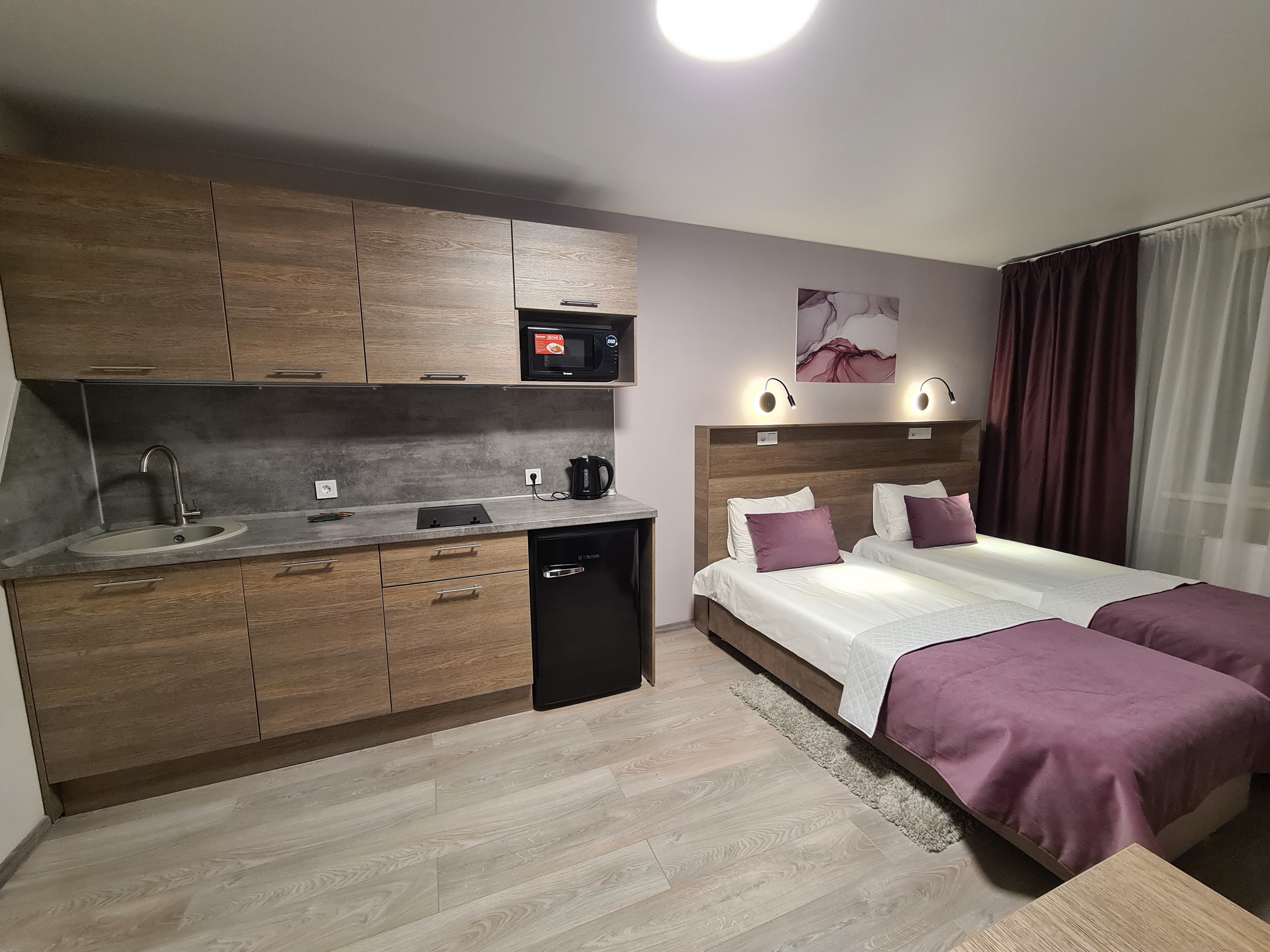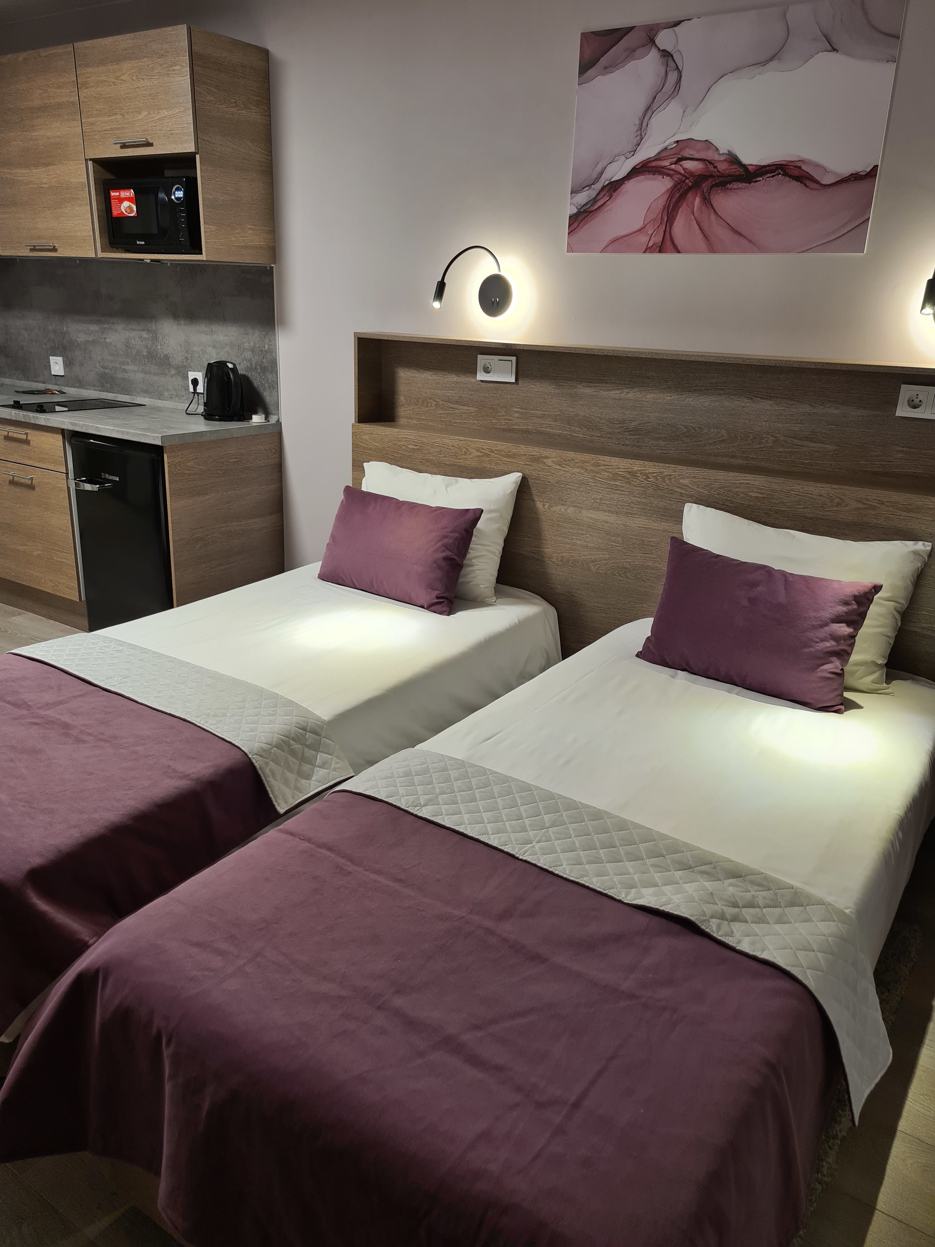 Апартаменты полностью меблированы, в номере есть все необходимое для комфортного проживания и отдыха 3 человек.