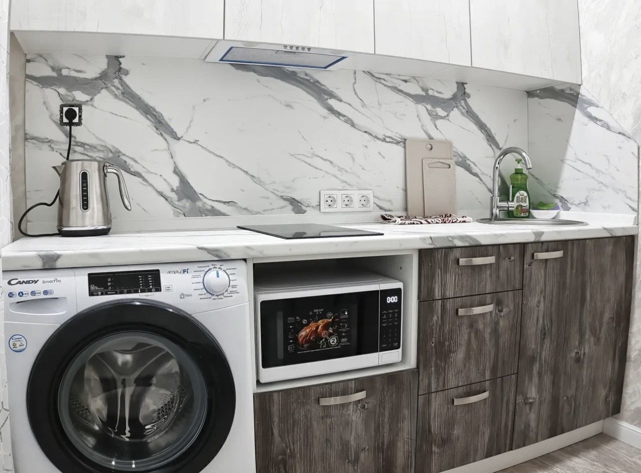 - Полностью оборудованная кухня: холодильник, плита, микроволновка, электрочайник, вся необходимая посуда.