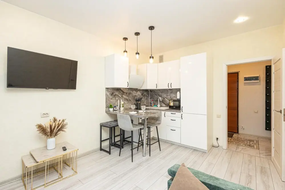 Интернет: высокоскоростной Wi-Fi от GооdLinе. Есть телевизор с приставкой «Большое ТВ», благодаря которой можно смотреть тысячи фильмов и сериалов.
