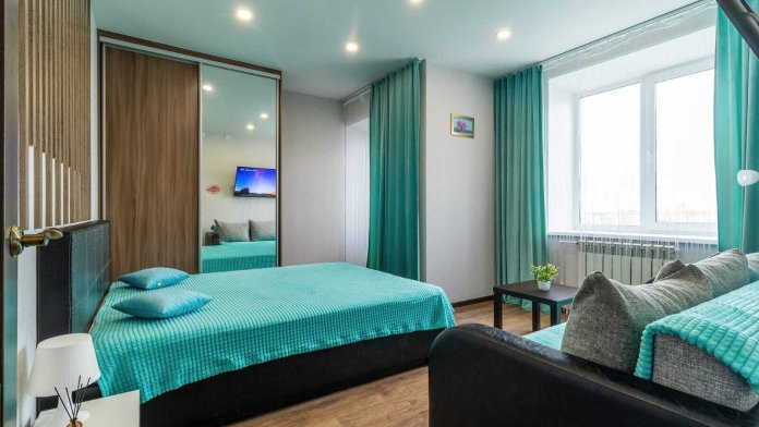 2 (два) раздельных спальных места. 2-спальная кровать и диван (раскладывается) в комнате.