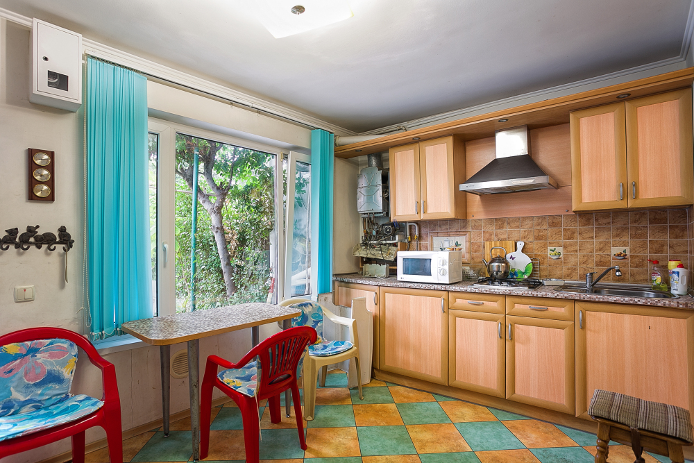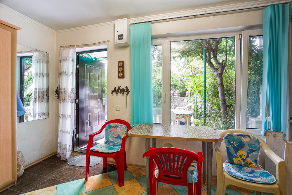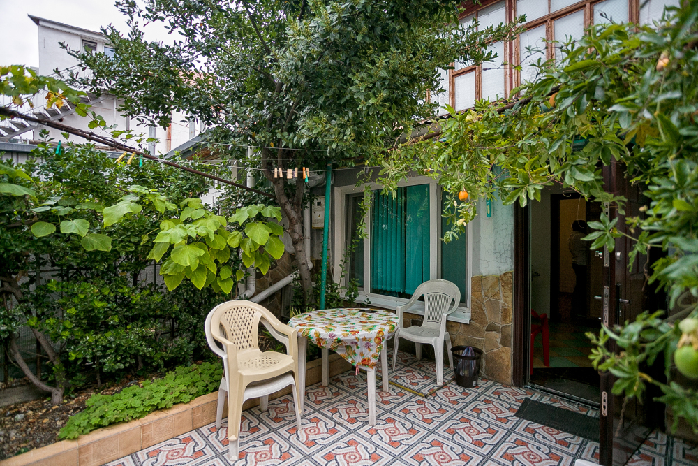 Двухкомнатная квартира в Ялте со своим двориком, находится в пяти минутах пешком от пляжа Массандровский.