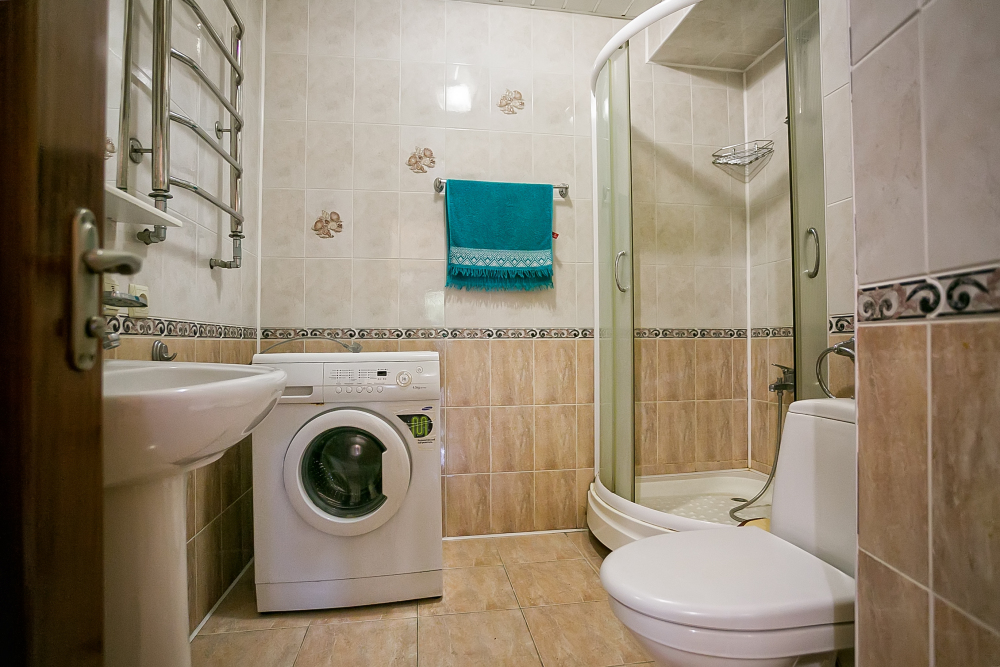 Для Вашего удобства имеется два раздельных санузла. В одном есть душевая кабина и туалет, а в ванной комнате туалет и ванна.