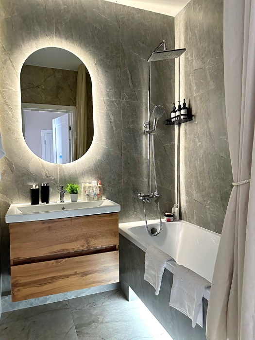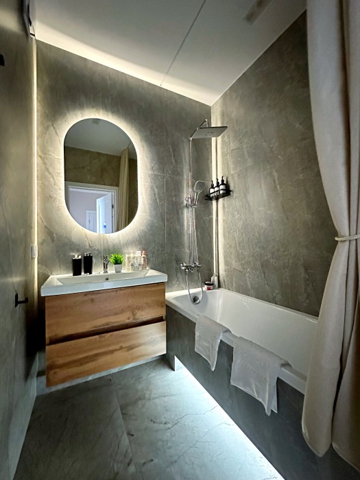 - Мы заботимся о наших гостях, поэтому в квартире Вас ждут тёплые махровые халаты и тапочки.