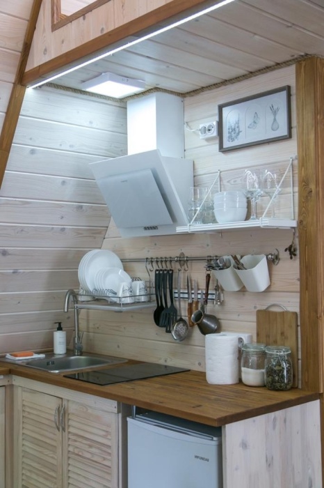 - холодильник, варочная панель, свч печь, электрочайник, столовая посуда, посуда для готовки;