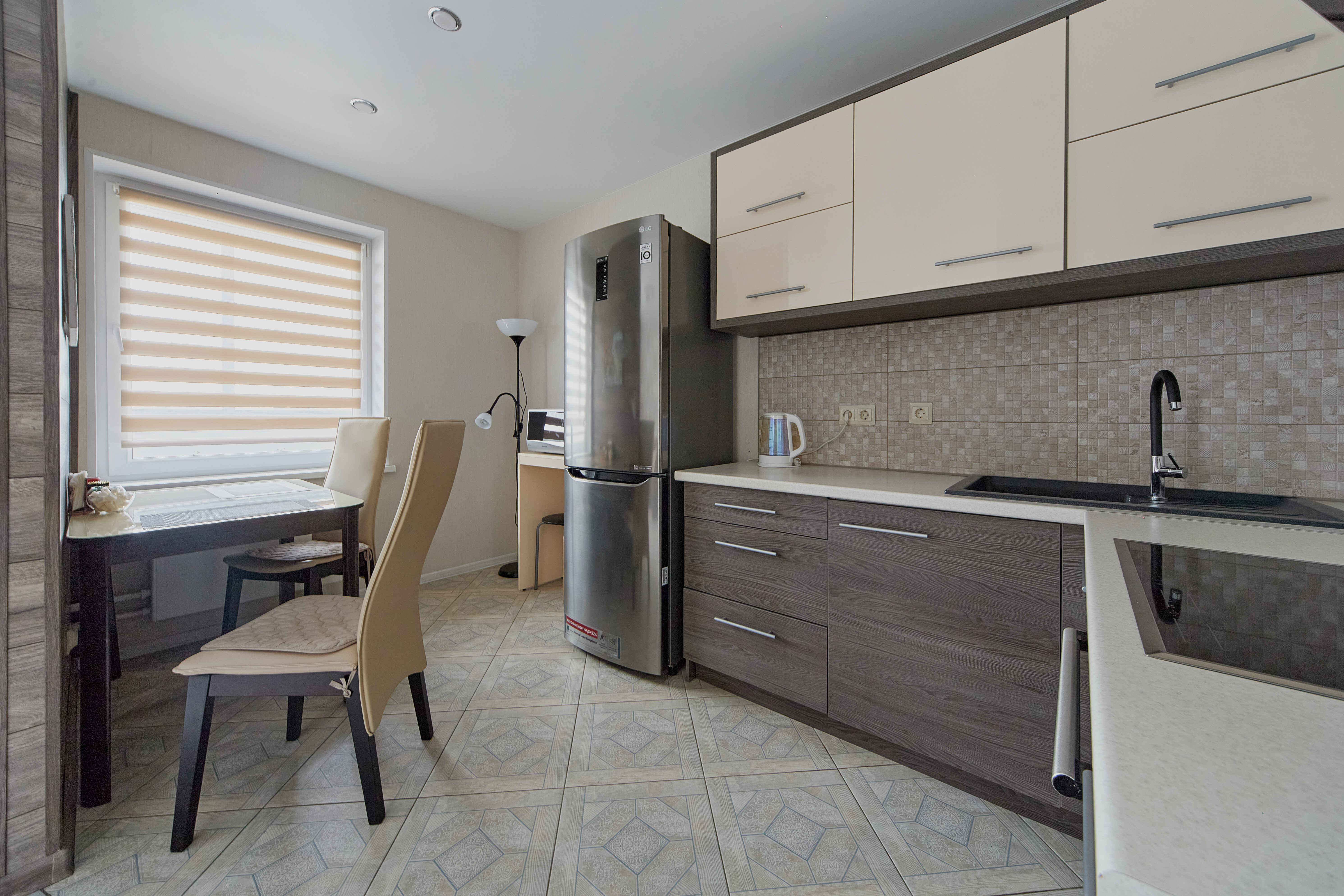 - Кухонная зона: необходимая бытовая техника, большой холодильник, обеденная зона, чистая посуда, чай, кофе, растительное масло.