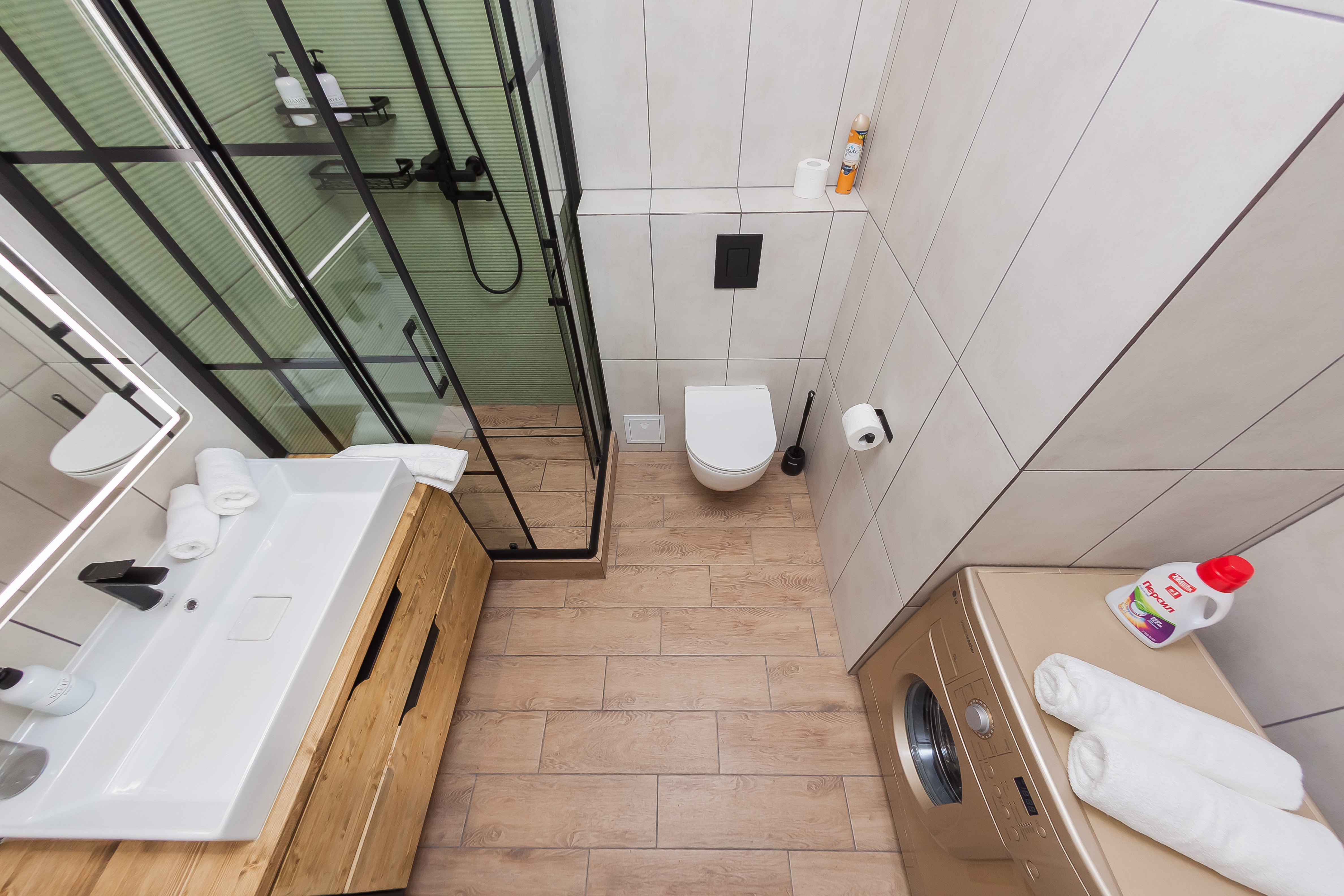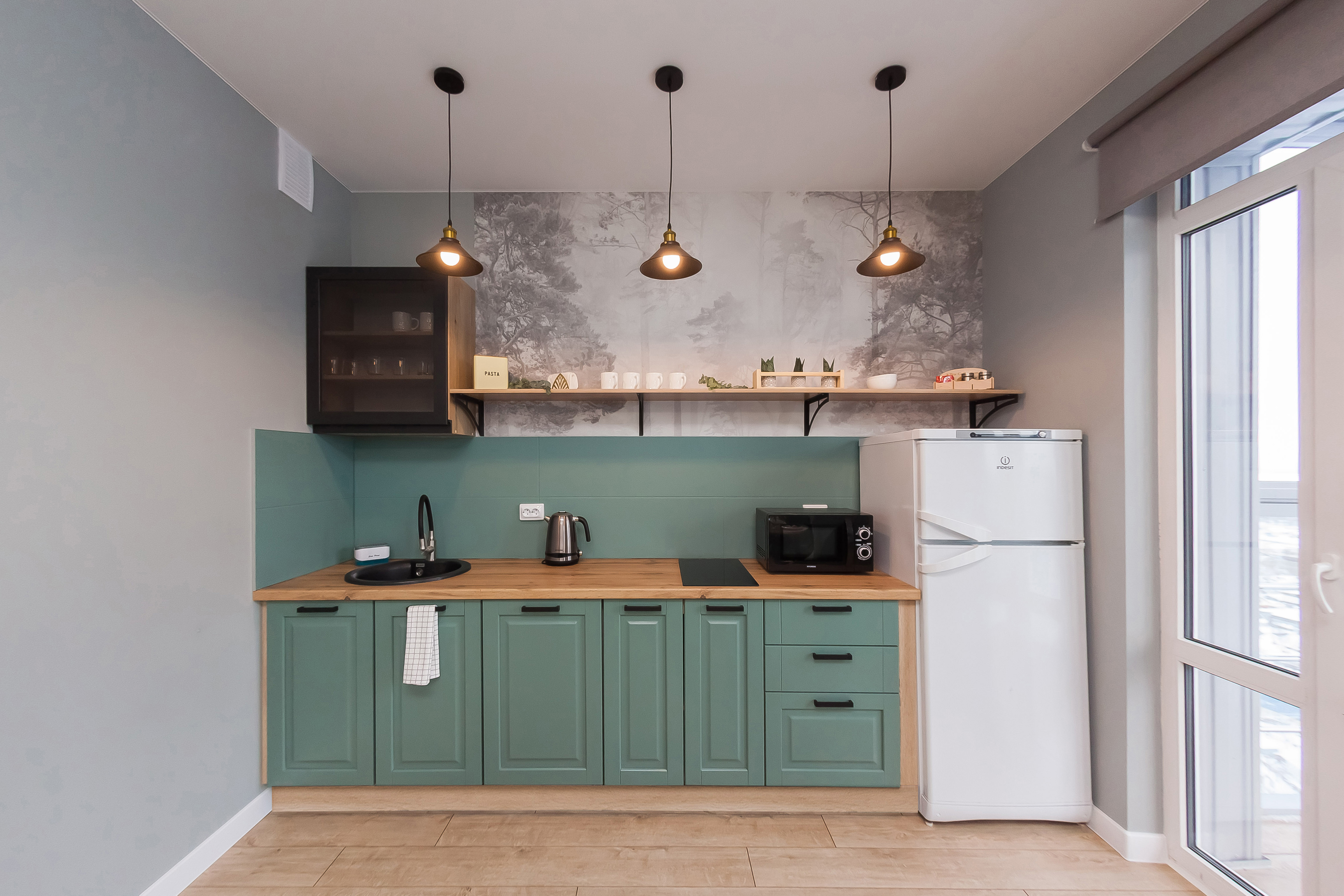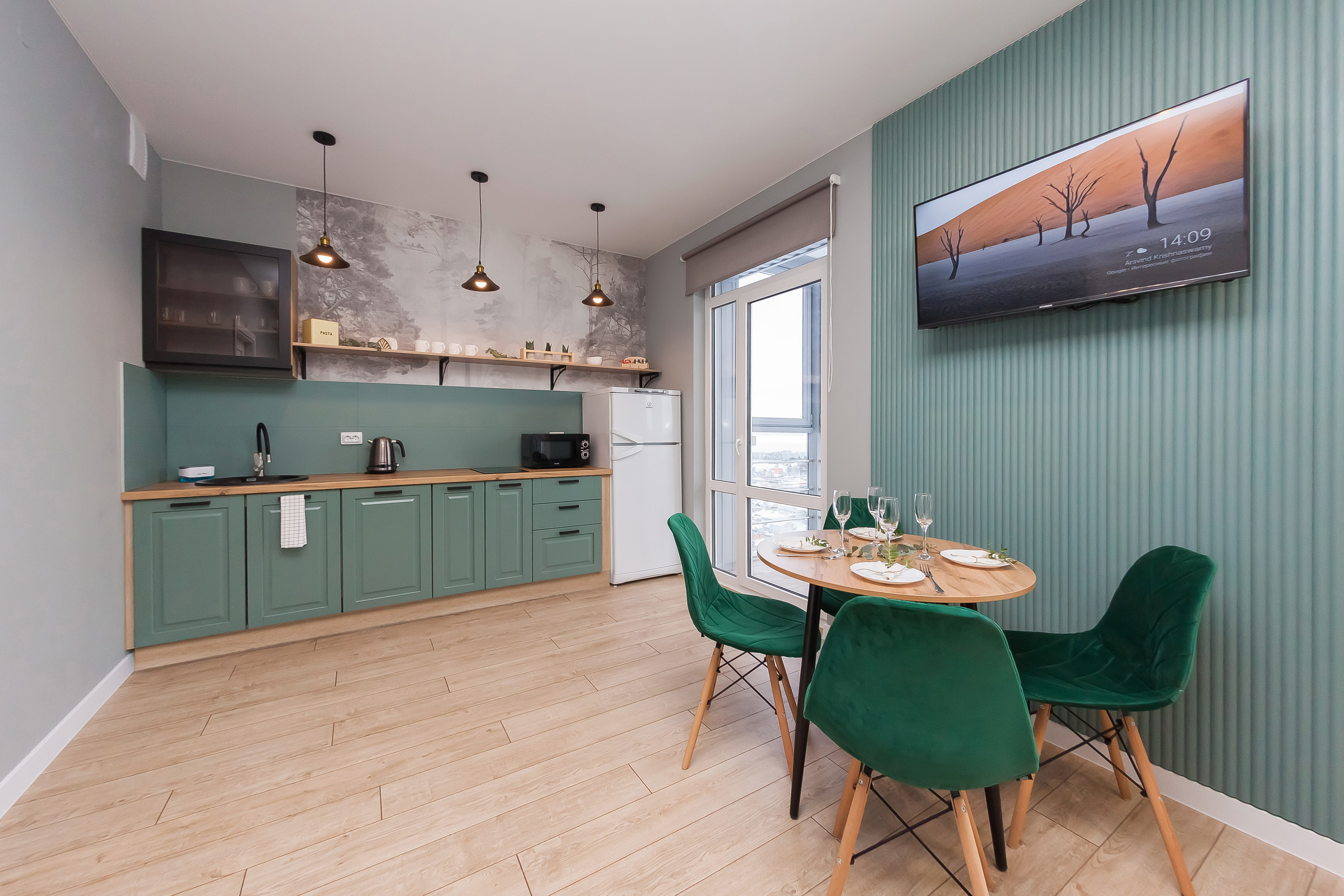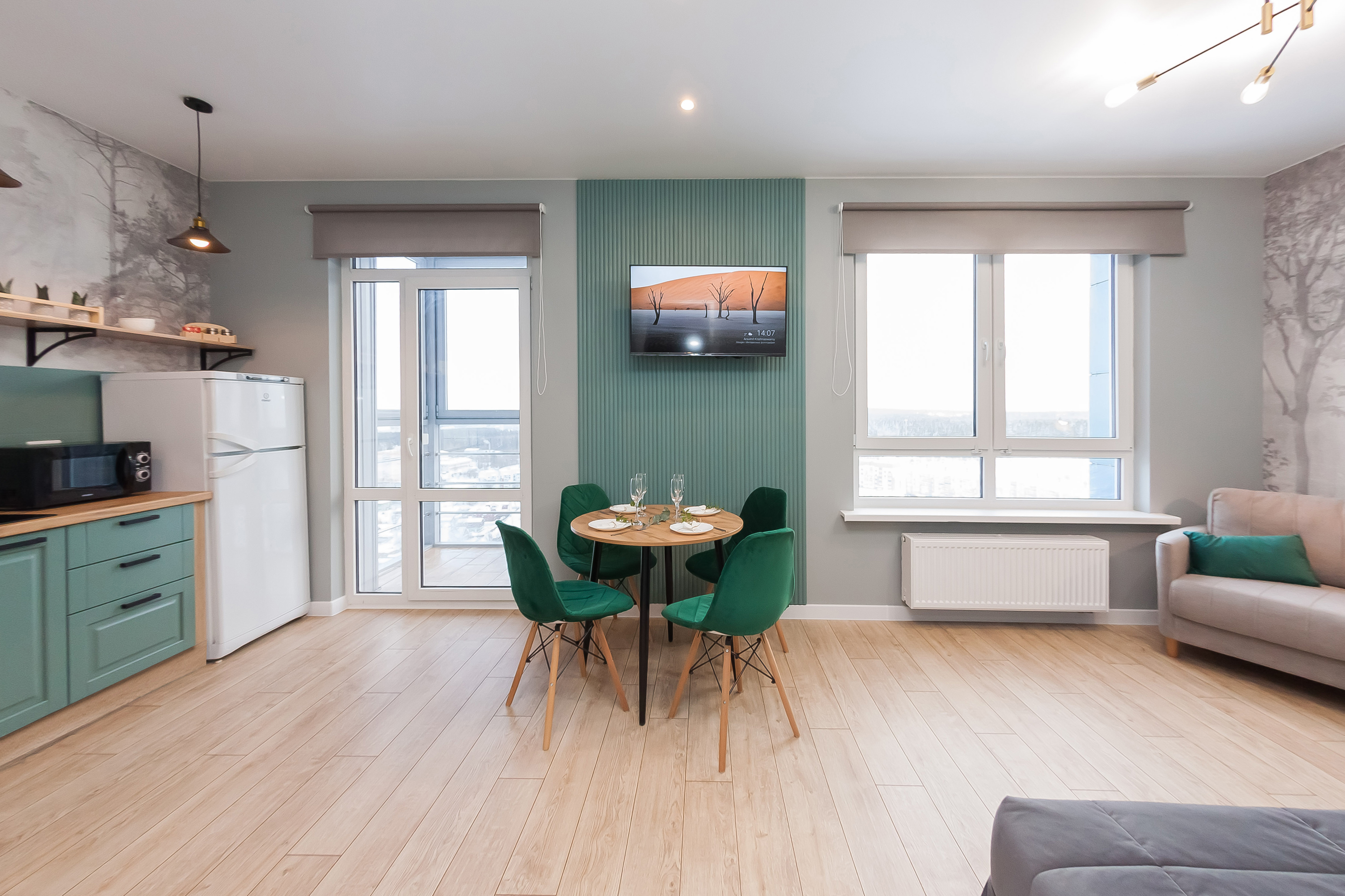 - Полная оборудованность: всё для жизни как дома - от быстрой стиральной машины и Wi-Fi до полностью укомплектованной кухонной зоны (посуда, холодильник, варочная поверхность для готовки, чайник, чай и кофе).