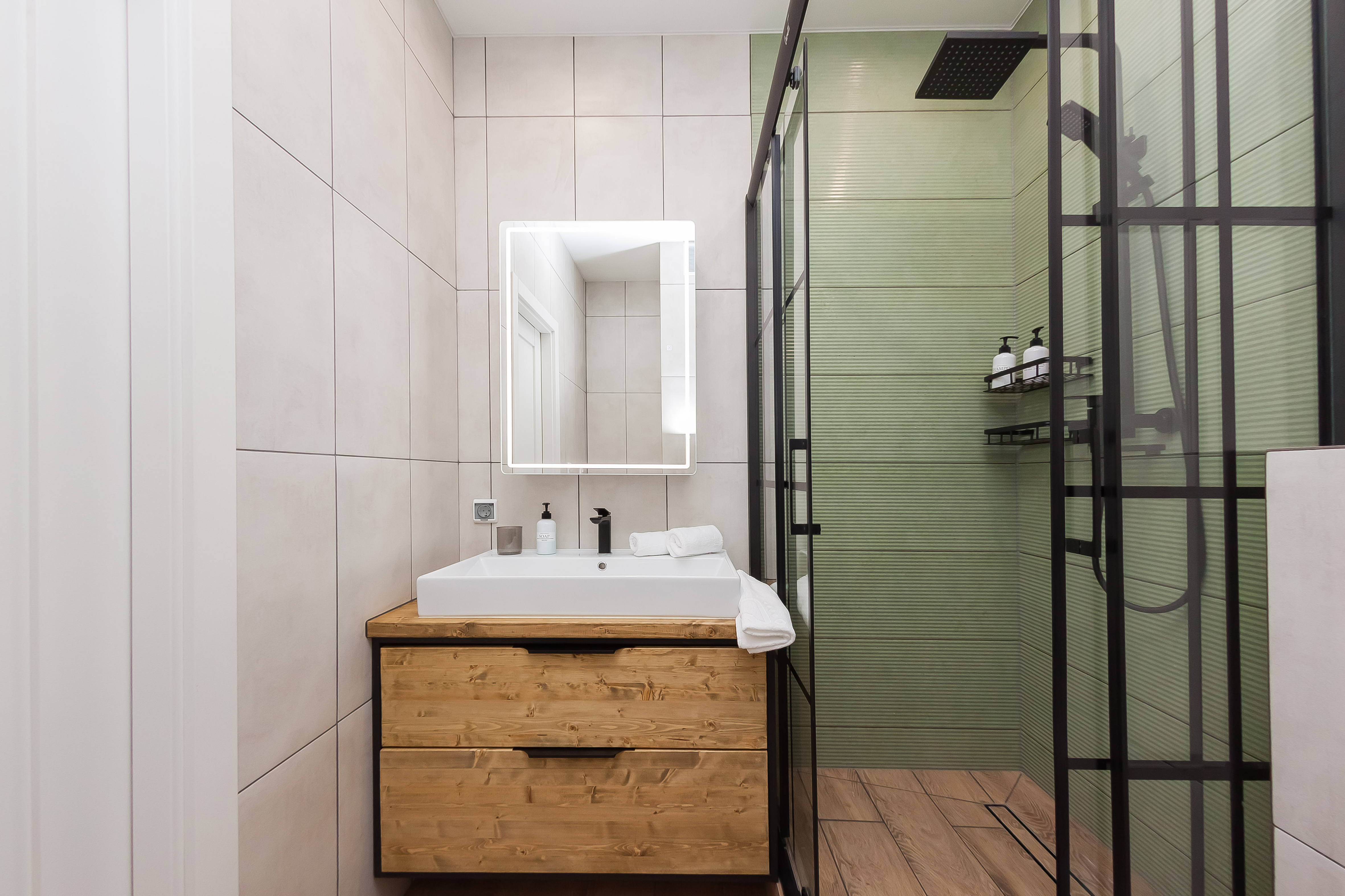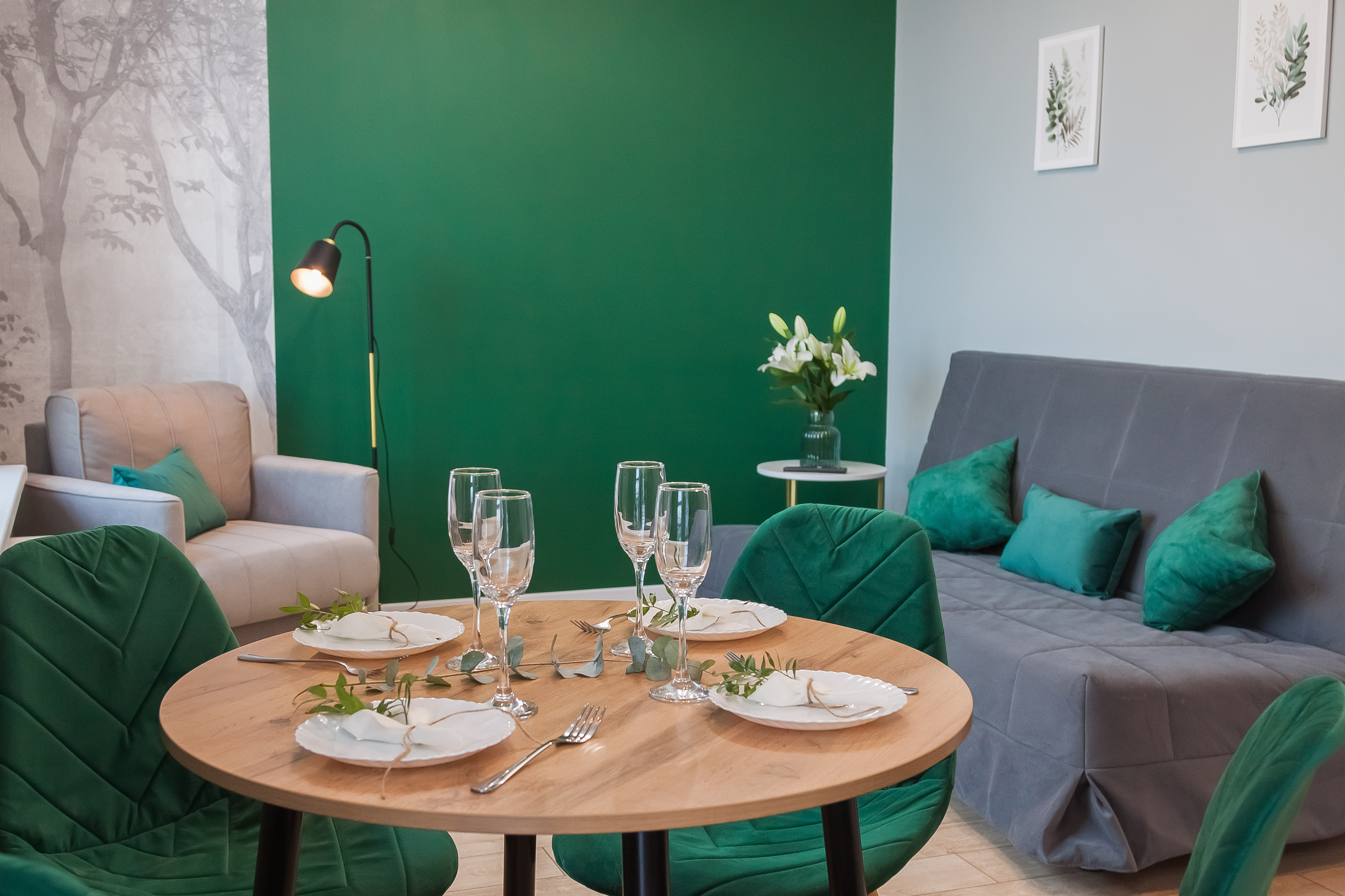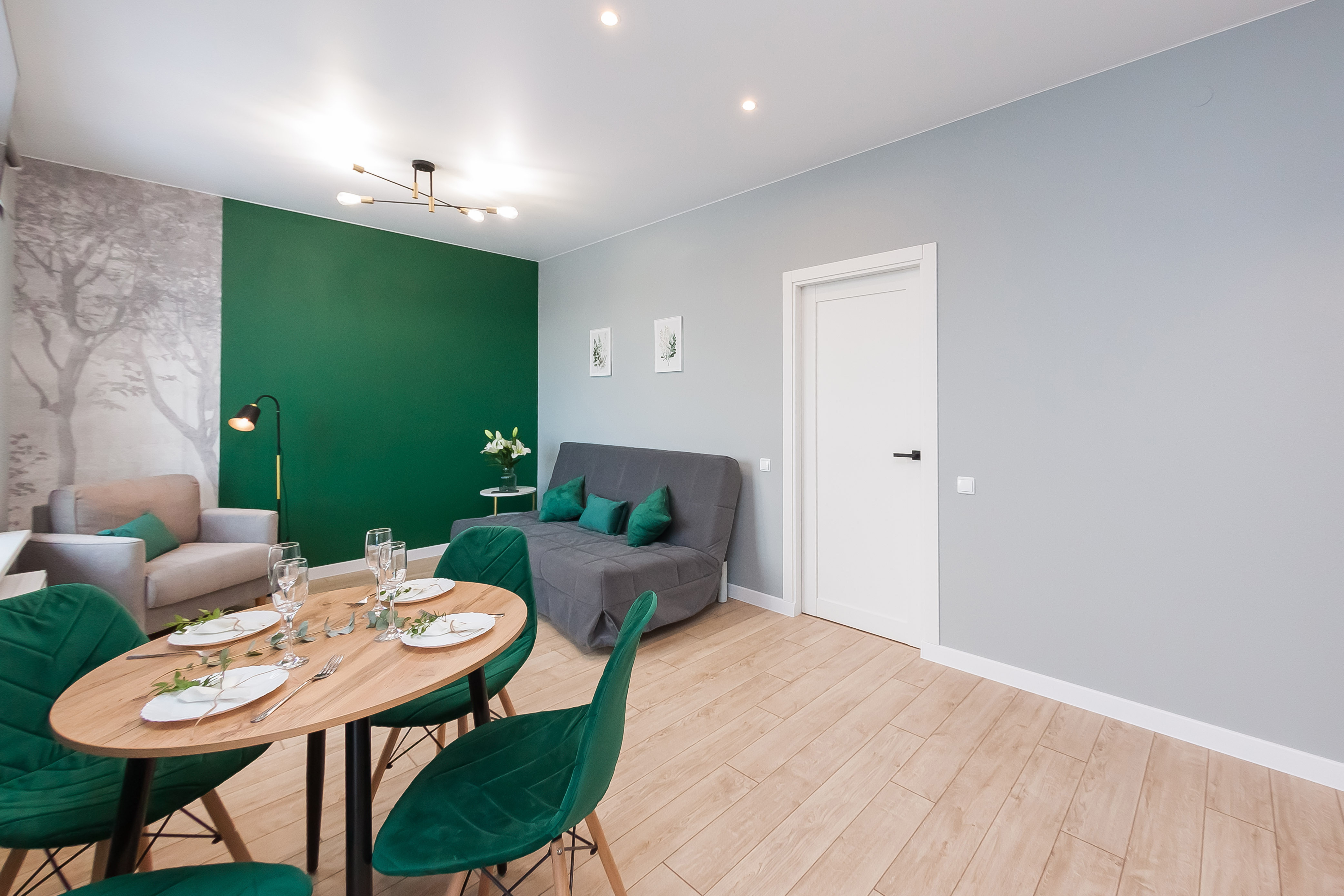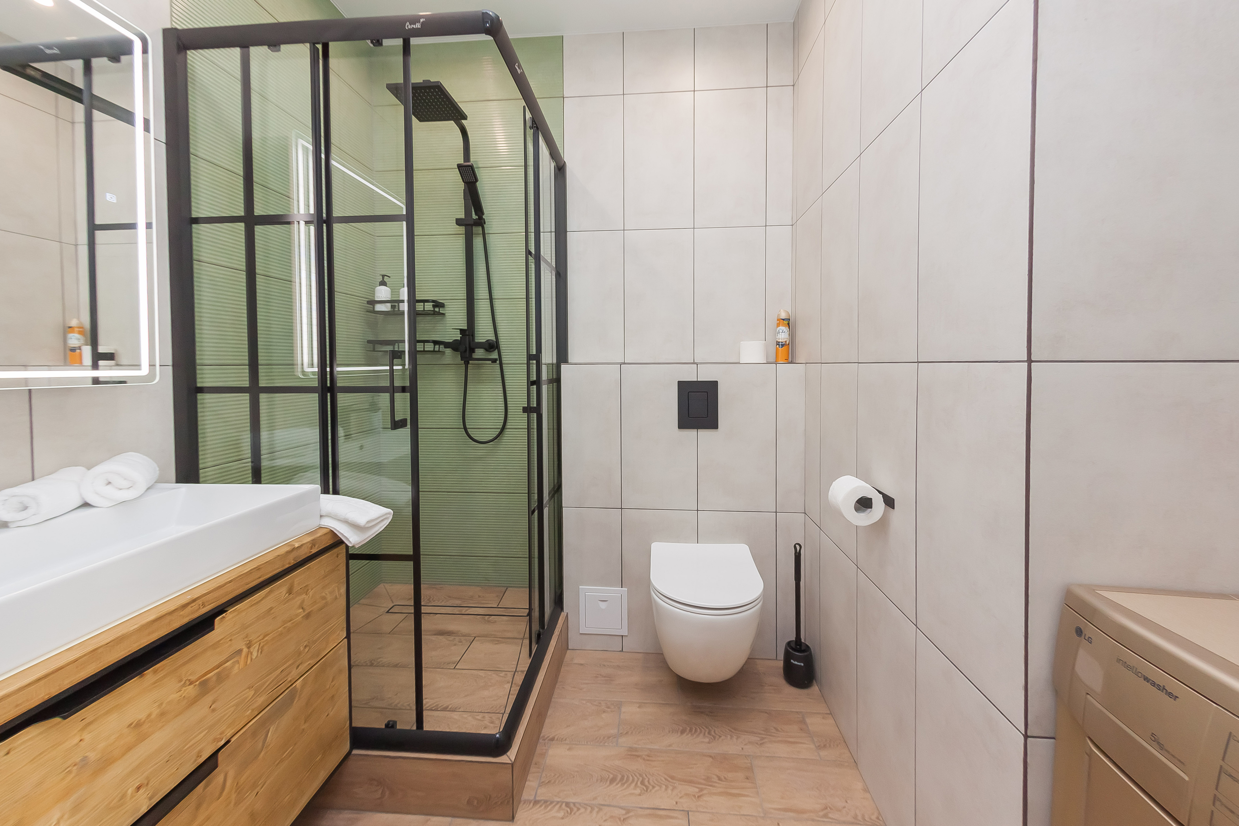 - Полная оборудованность: всё для жизни как дома - от быстрой стиральной машины и Wi-Fi до полностью укомплектованной кухонной зоны (посуда, холодильник, варочная поверхность для готовки, чайник, чай и кофе).