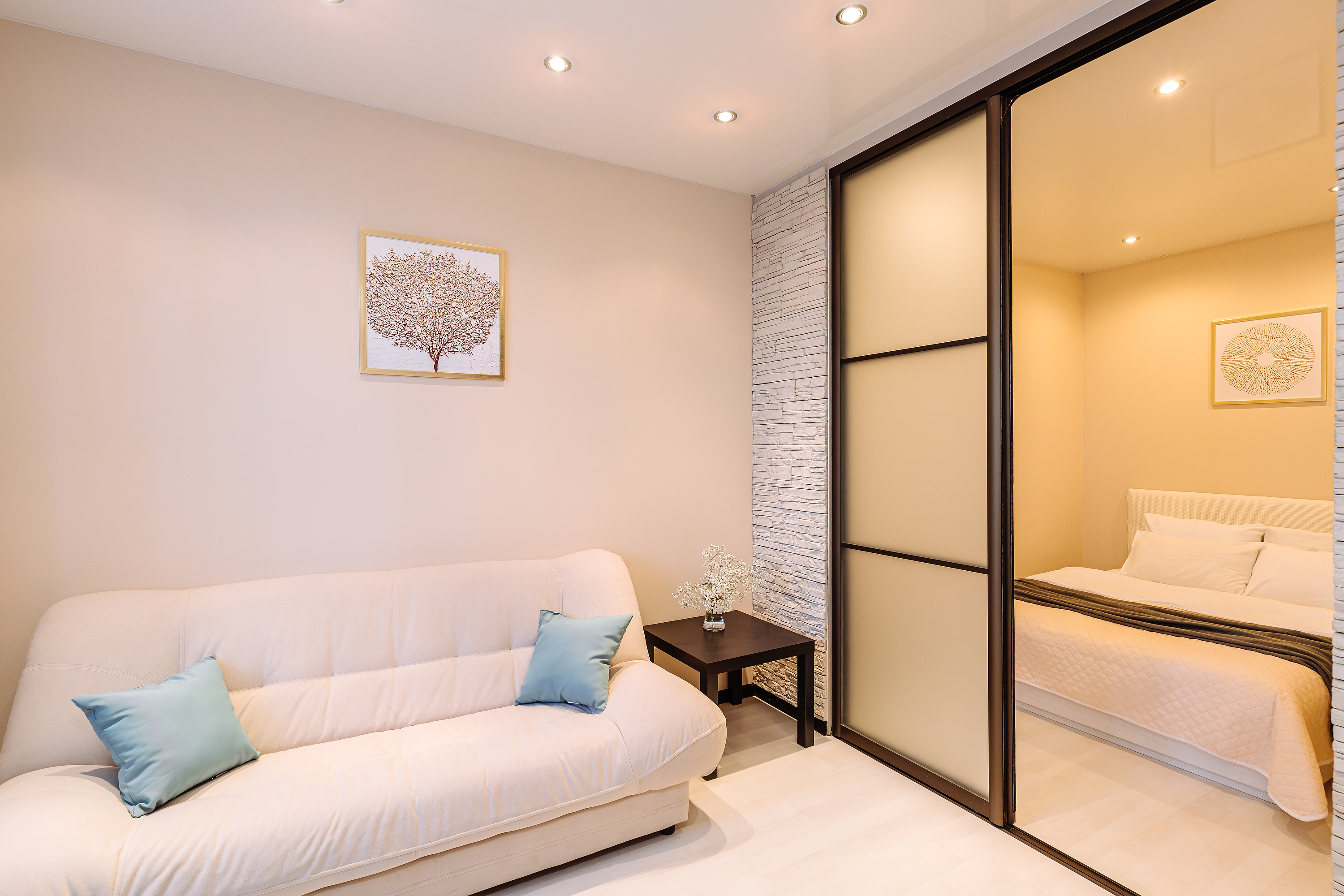 - 2 комфортных спальных места, которые позволят разместить до 3-х гостей (большая мягкая кровать и удобный диван).