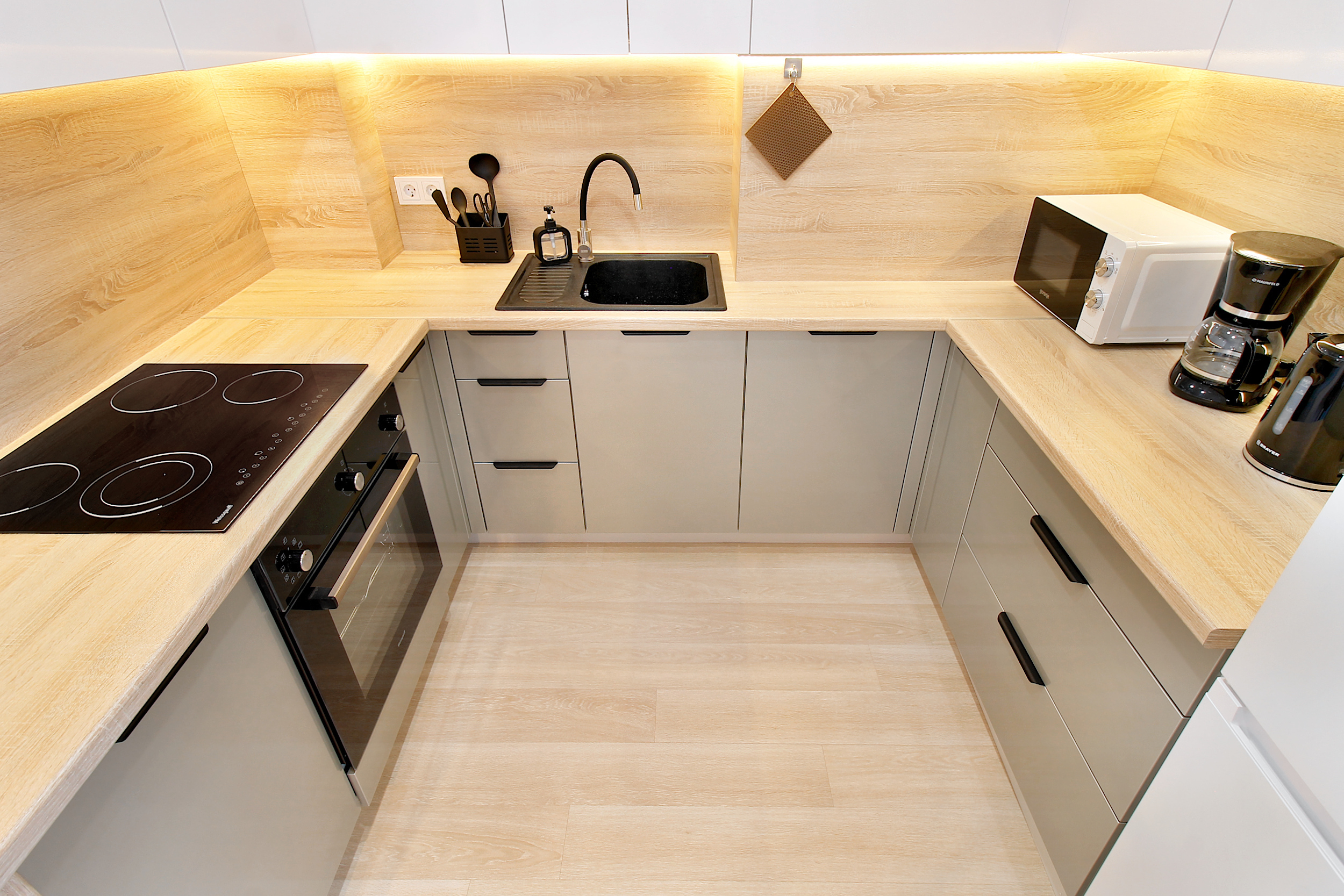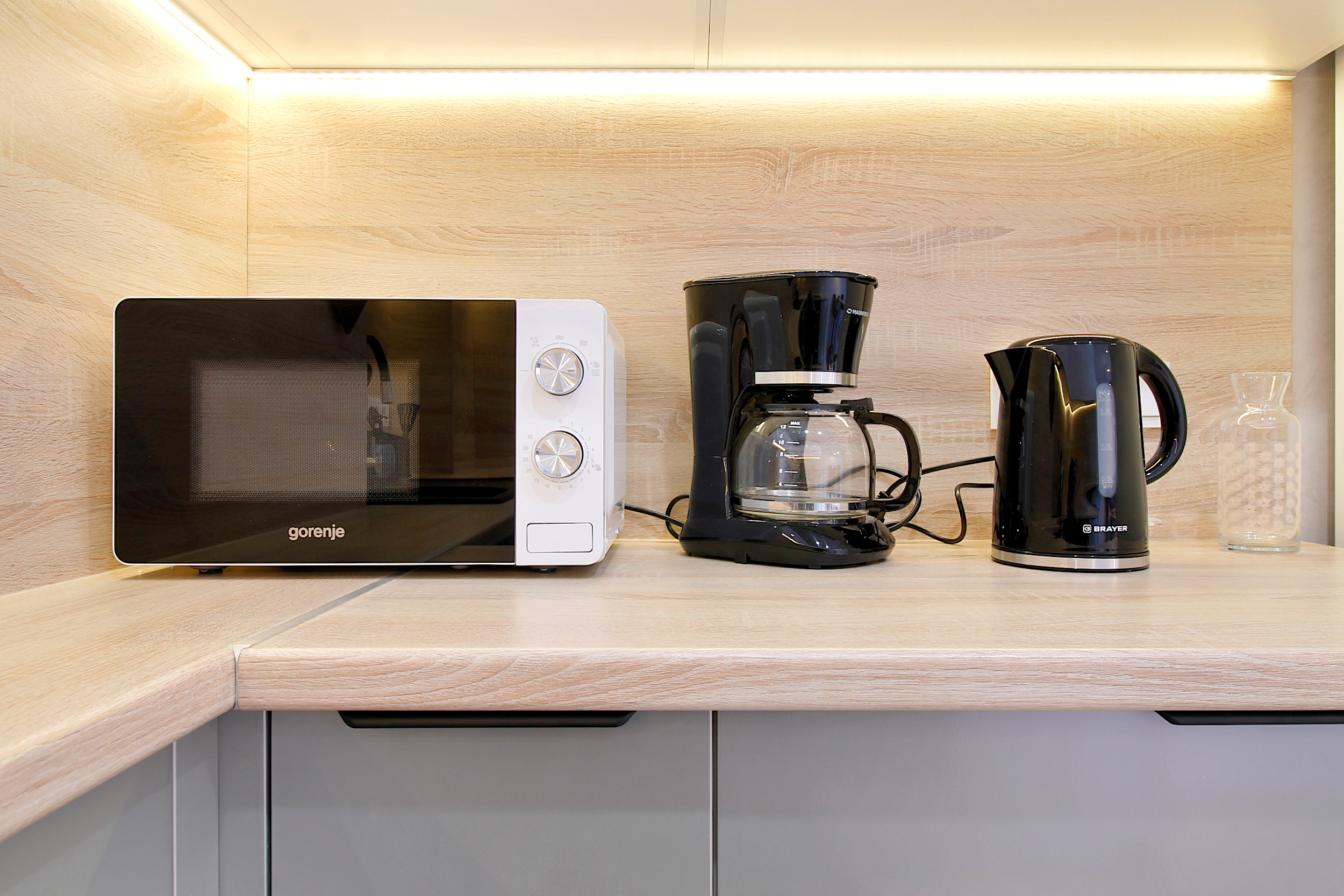 - Кухонная зона: необходимая бытовая техника, чистая посуда, чай, кофе, растительное масло.