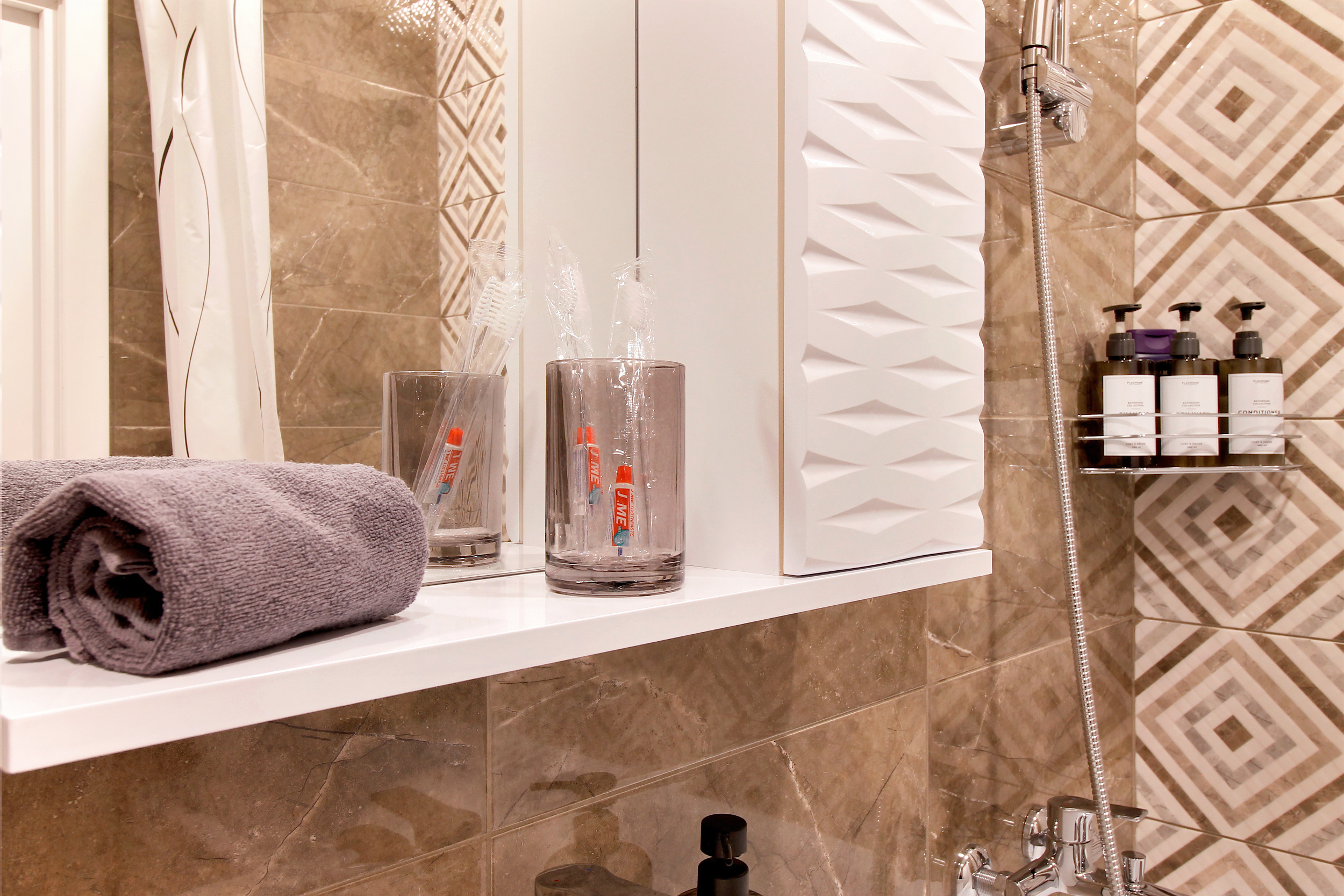 - Ванная: фен, стиральная машина, гель для стирки вещей, шампунь, гель для душа, жидкое мыло; утюг, гладильная доска, сушилка для Вашего белья после стирки.
