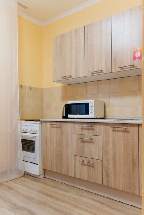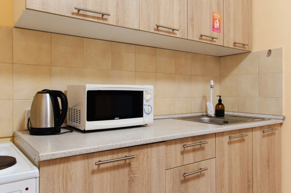 - кухня, оборудованная всем необходимым, от чайника до духового шкафа;