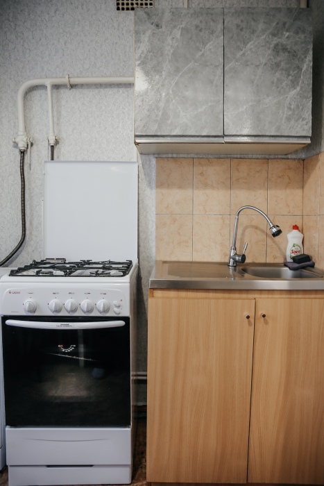 - кухня с техникой и посудой (холодильник, плита, духовка, микроволновка, чайник);