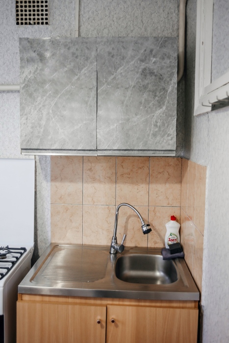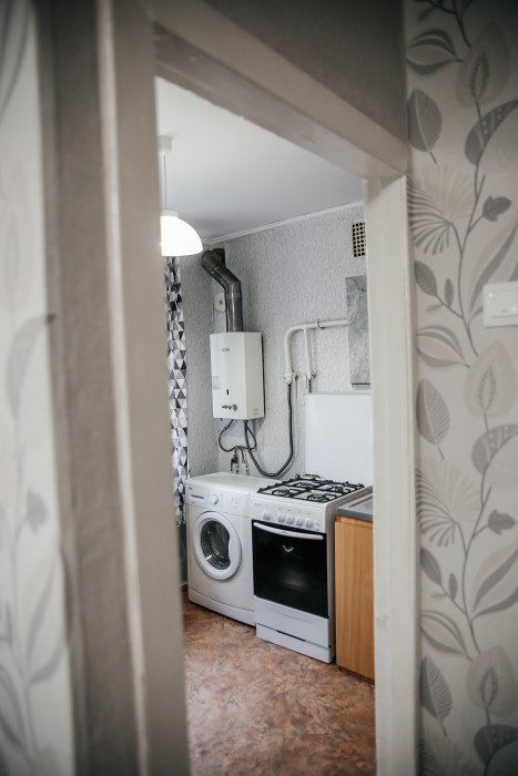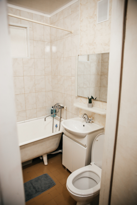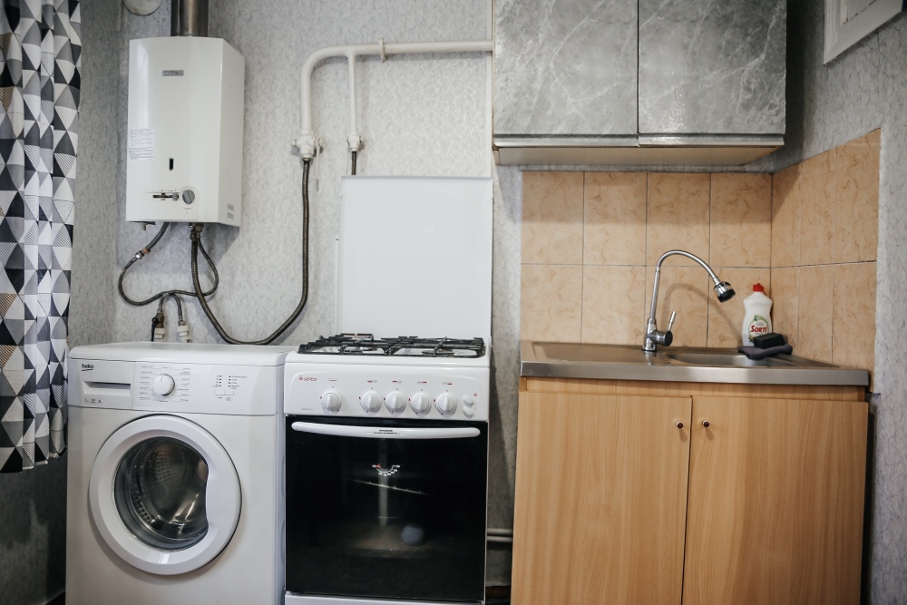 - совмещённый санузел с полноценной ванной, стиральная машина, средства гигиены;