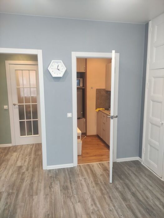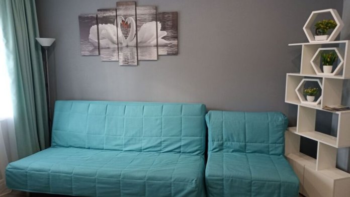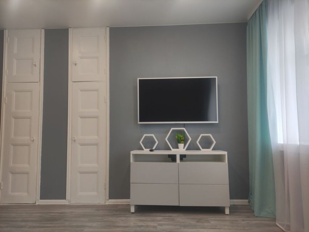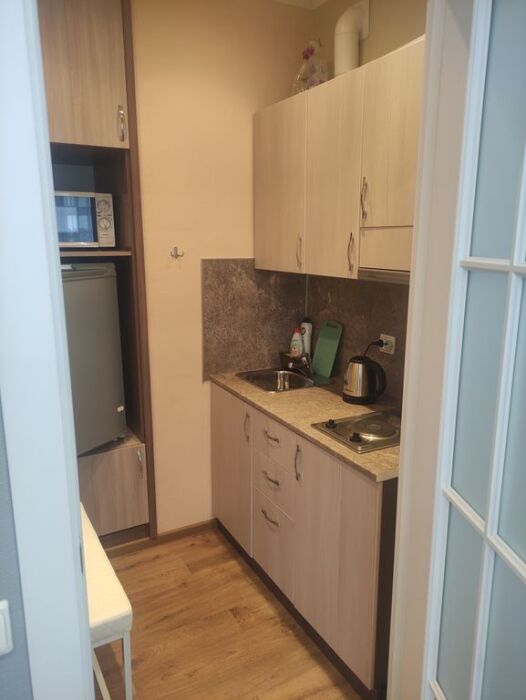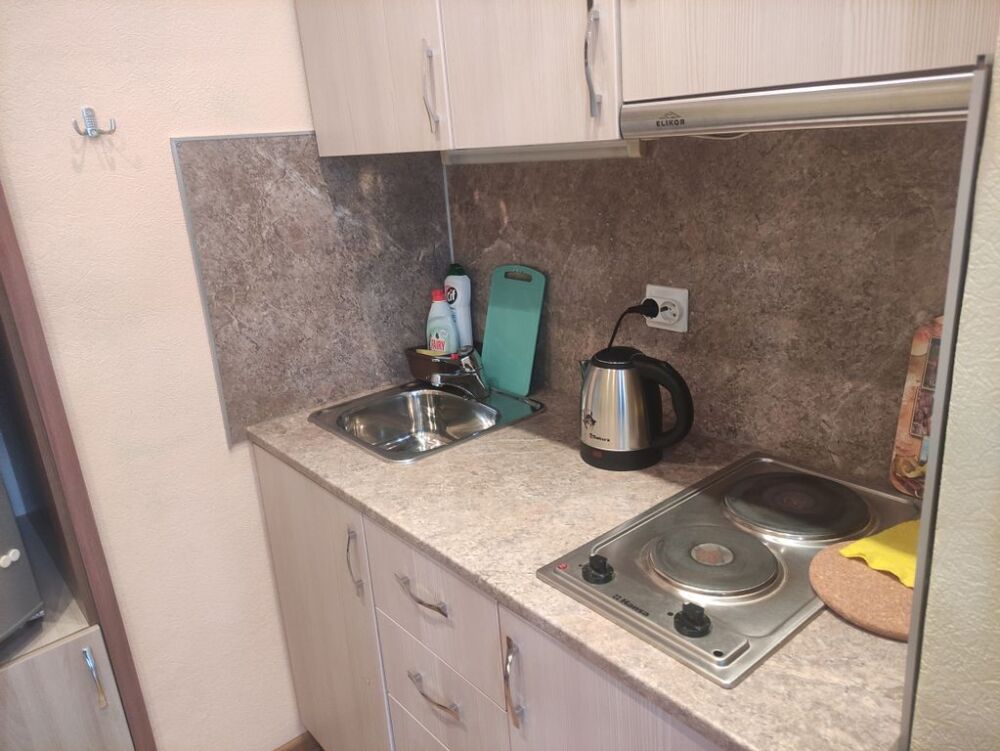 Квартира оборудована всем необходимым для комфортного проживания: санузел, кухня. Имеется вся необходимая техника: стиральная машинка, электрический бойлер, холодильник, микроволновка, плита, телевизор. В квартире двухместный диван-кровать и раскладное икеевское кресло.