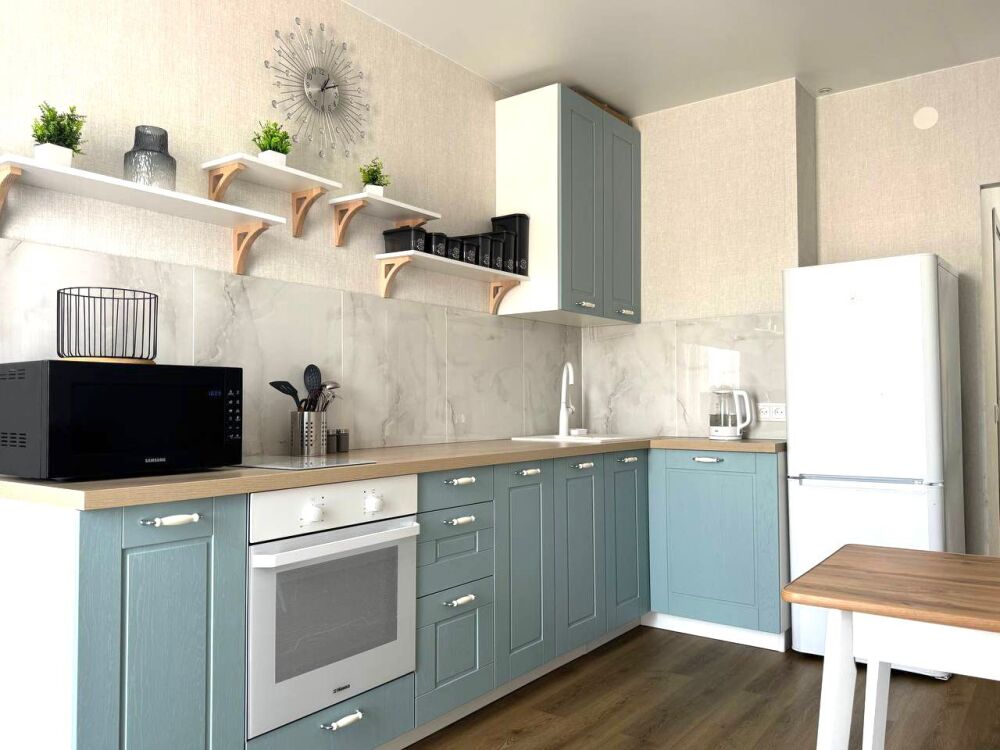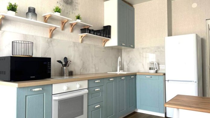 - Кухня, оборудованная всем необходимым, от чайника до духового шкафа
