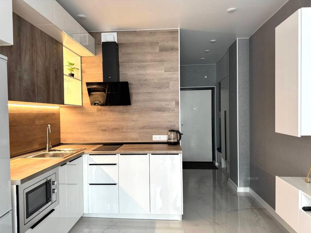 - Кухня, оборудованная всем необходимым, от чайника до духового шкафа